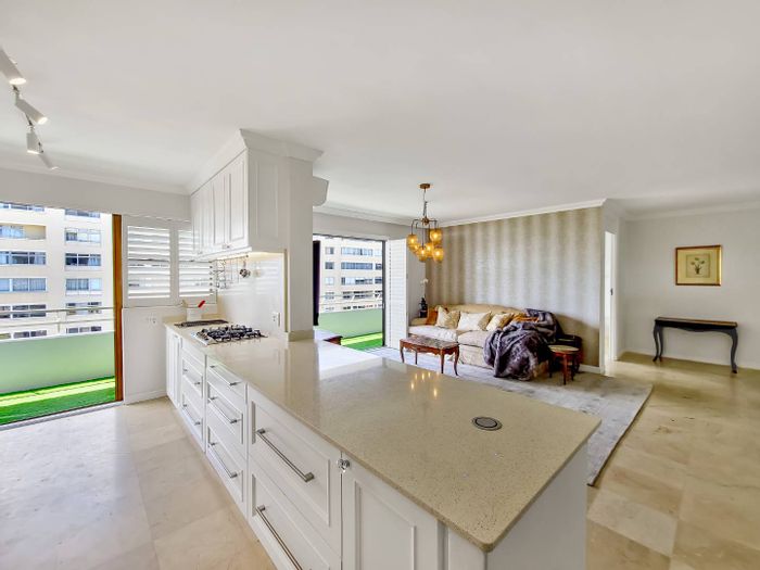 Two-bedroom apartment with sea views, balcony, garage, and security in Three Anchor Bay. Close to amenities and beaches.