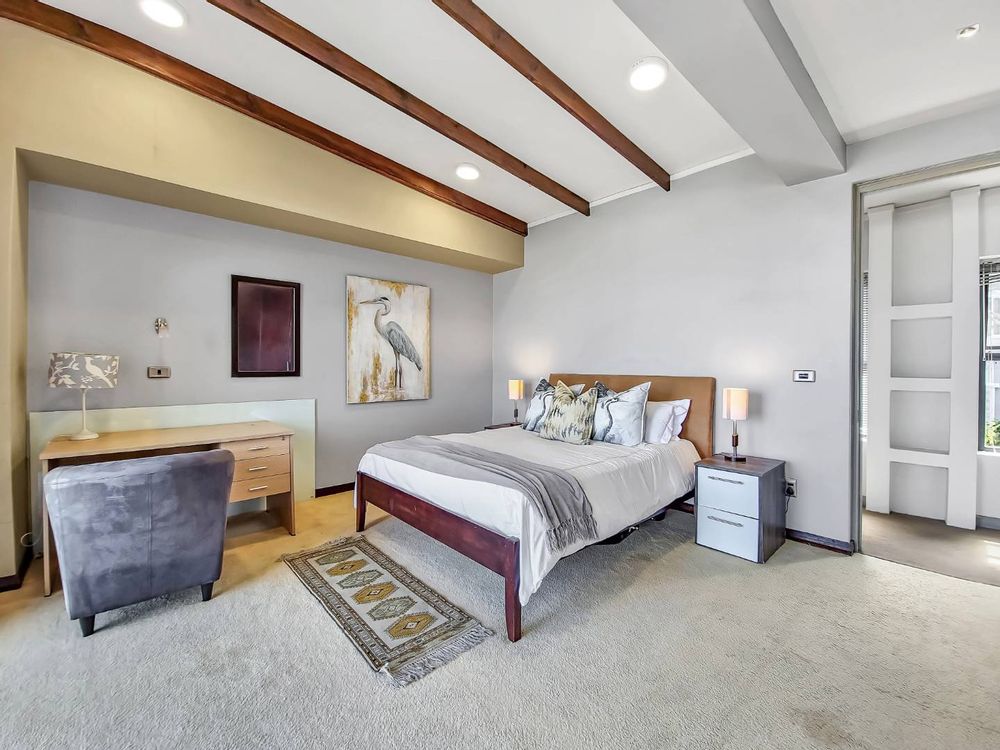 The study or home office, with a private entrance, overlooks the garden and holds potential for conversion into a separate flatlet, offering flexibility and functionality.