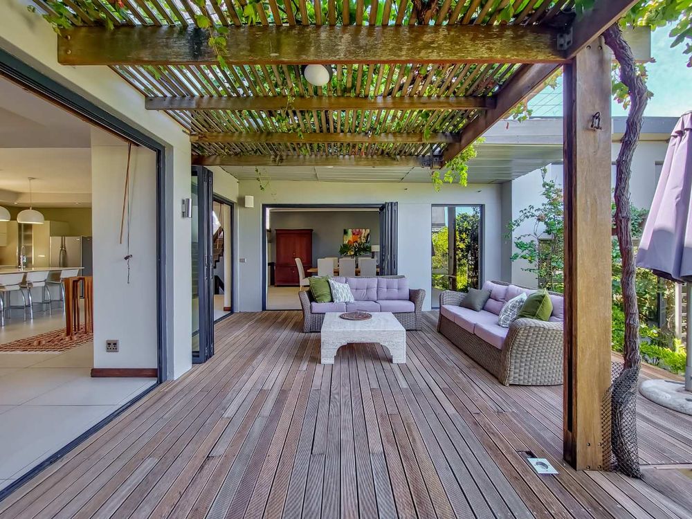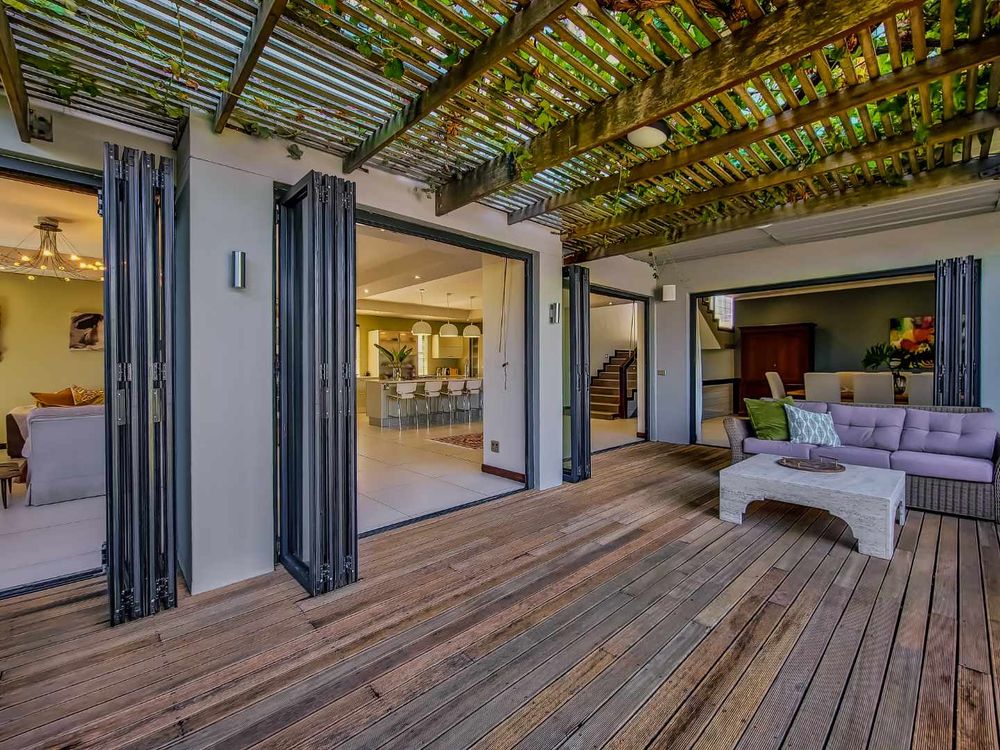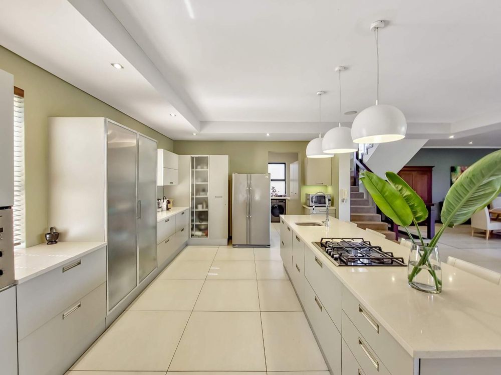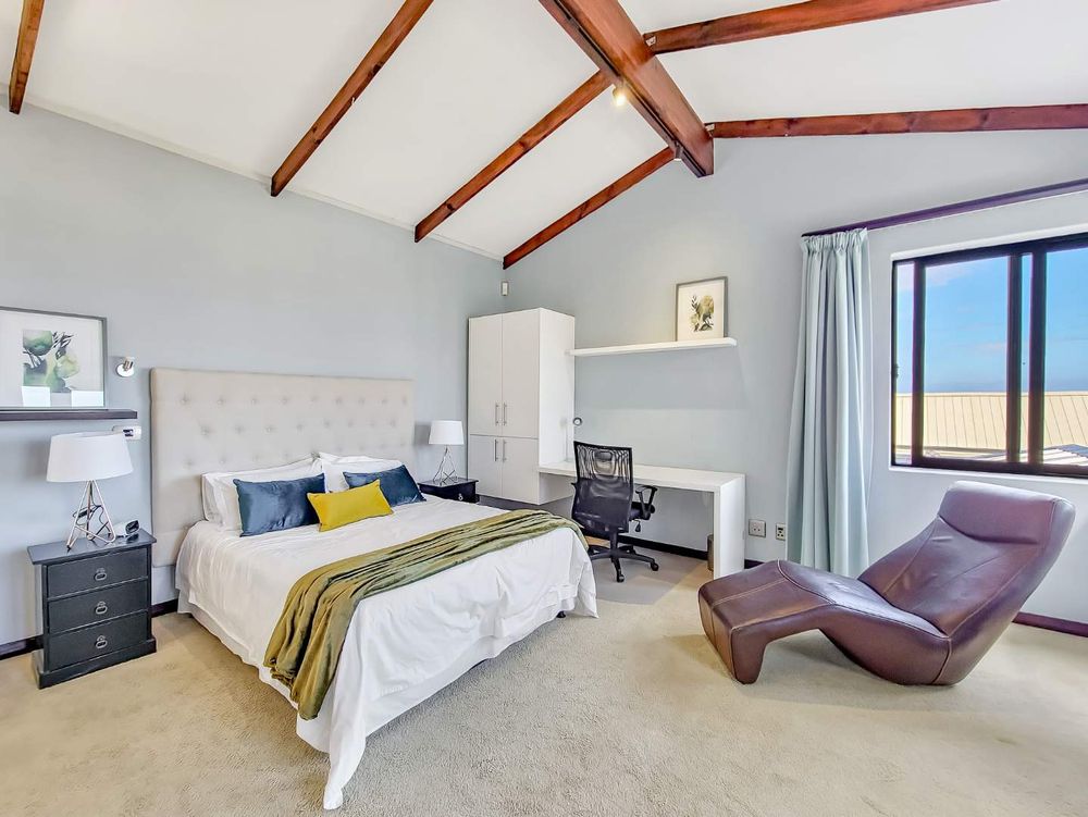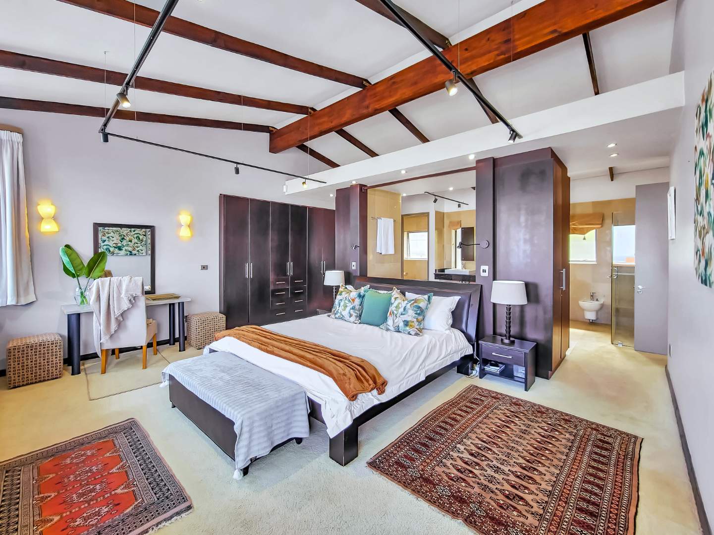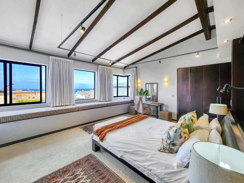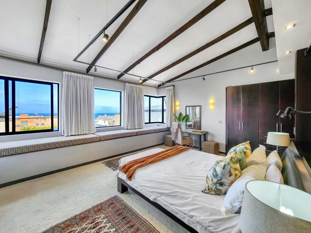 This home comprises four generous bedrooms, each boasting sea views and en-suite bathrooms. The master suite, a sanctuary of comfort, features bay windows framing captivating vistas of the ocean and Table Mountain. Two of the bedrooms share a balcony, providing a serene perch to admire the ocean views.
