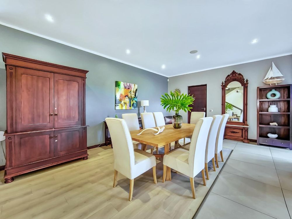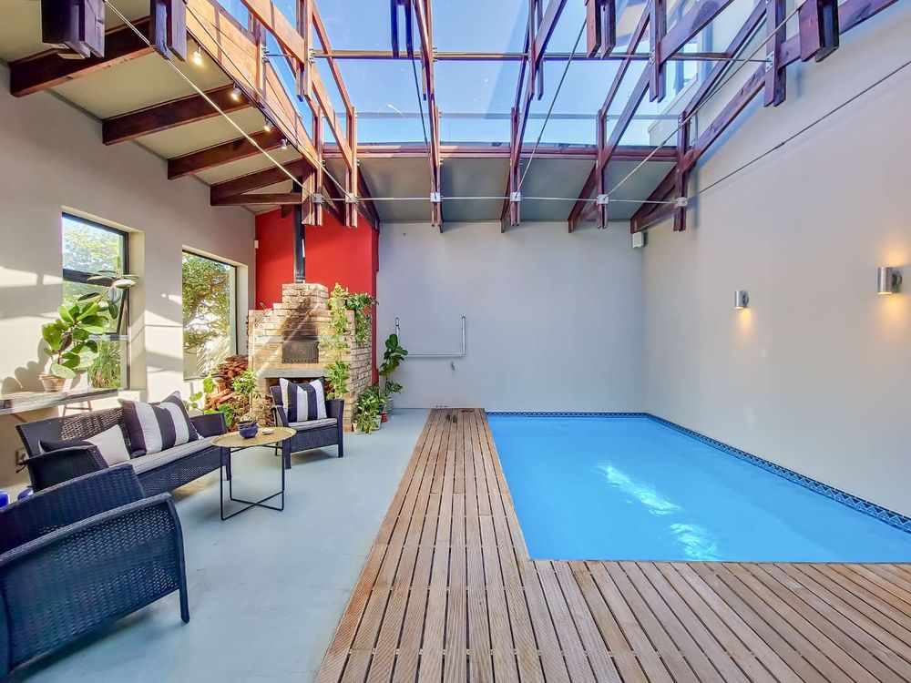 The indoor pool and braai area, creates a perfect setting for entertaining friends no matter the weather. The extra-large garage could possibly accommodate 3 cars.