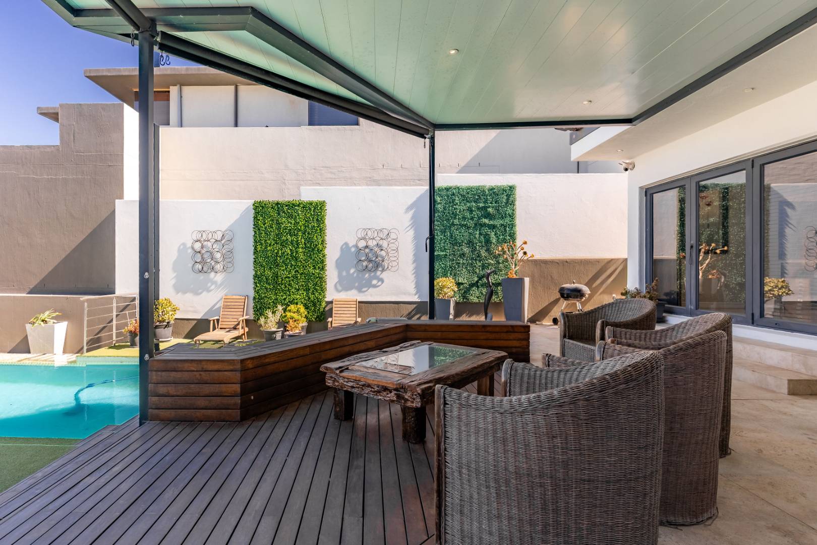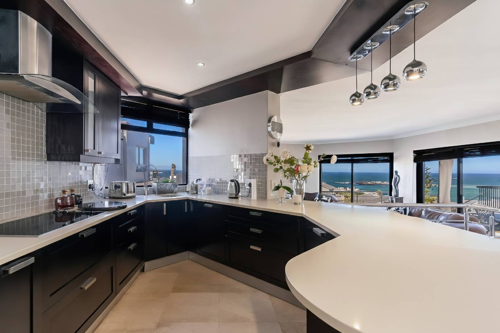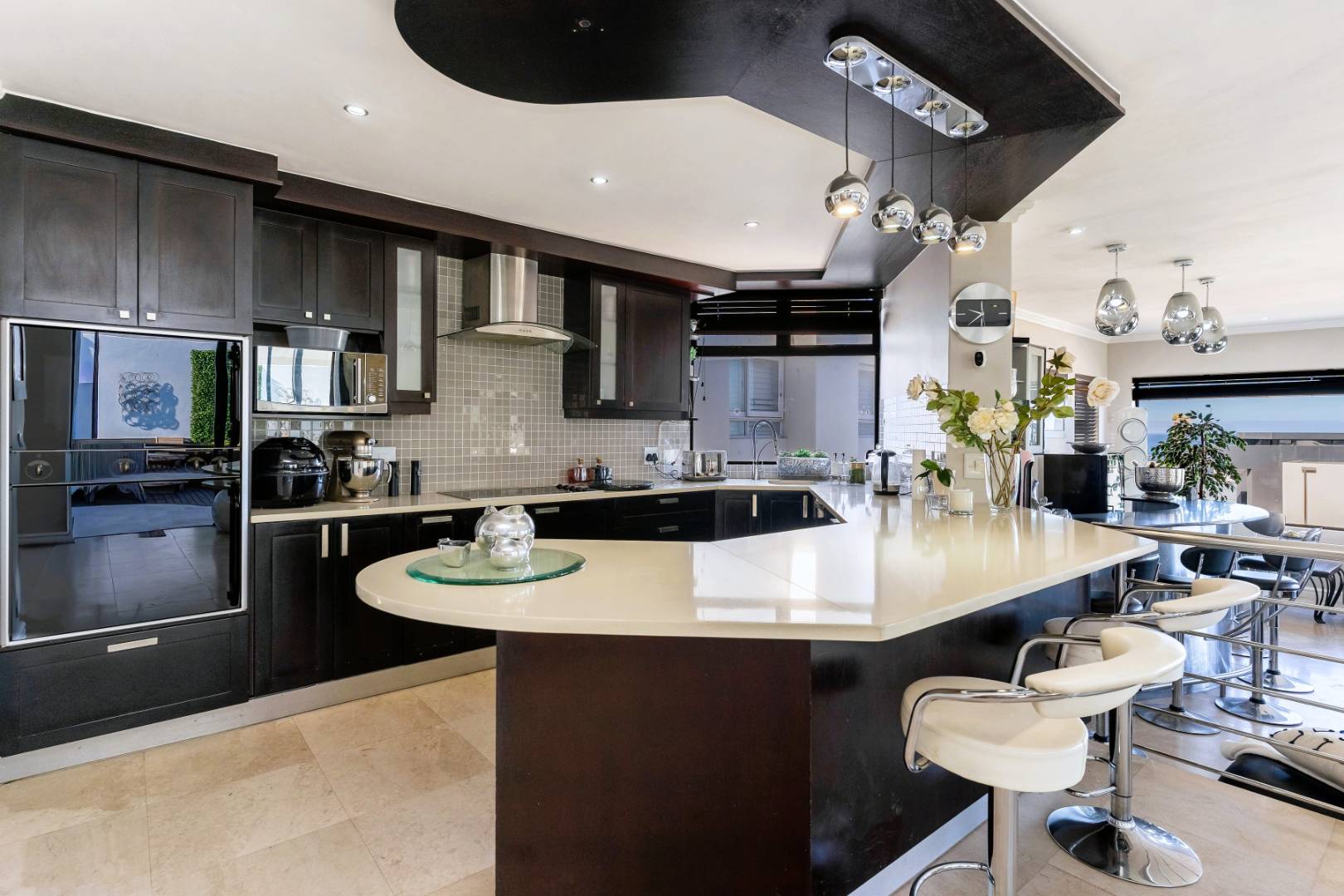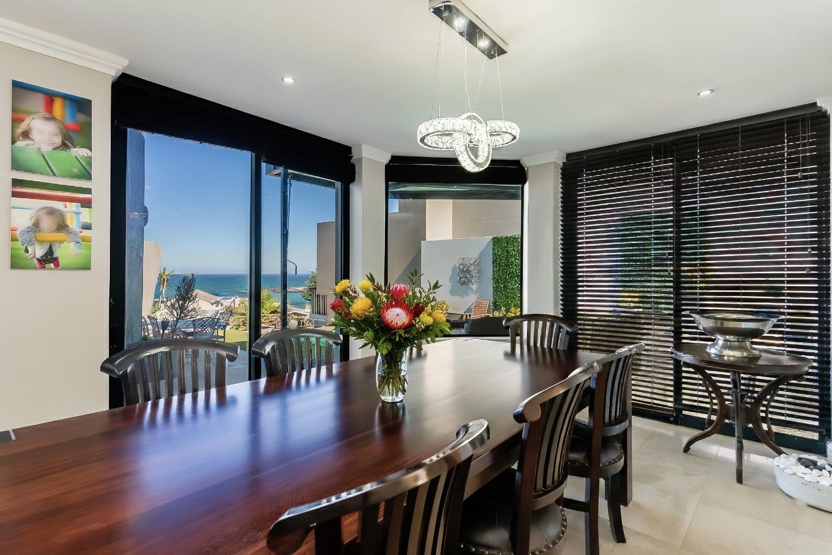 The lounge, complete with a stylish bar and views of the ocean, invites easy entertaining, while the modern kitchen with a tucked-away scullery is both practical and welcoming, ready for anything from casual breakfast to festive dinners. For more casual days, the TV room with built-in braai, opens directly onto the covered patio and sparkling rim-flow pool, ideal for spending those sun-filled summer days while watching spectacular sunsets over the Atlantic with Table Mountain on the side.