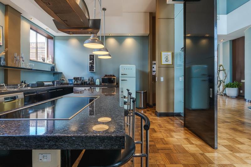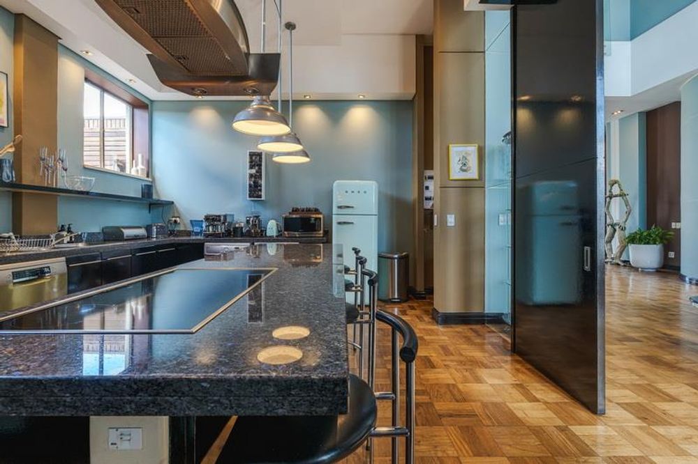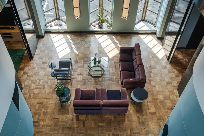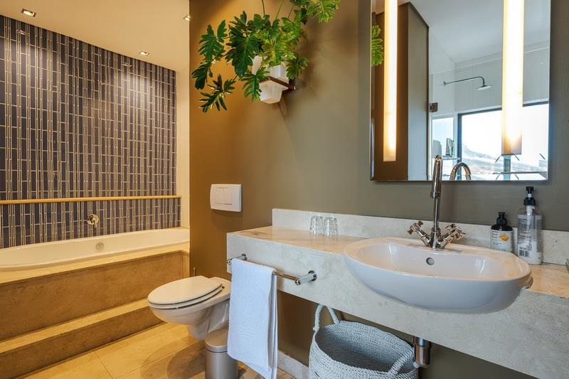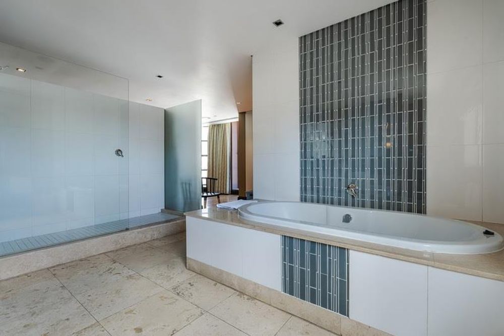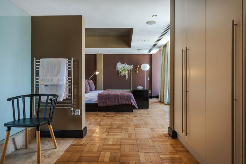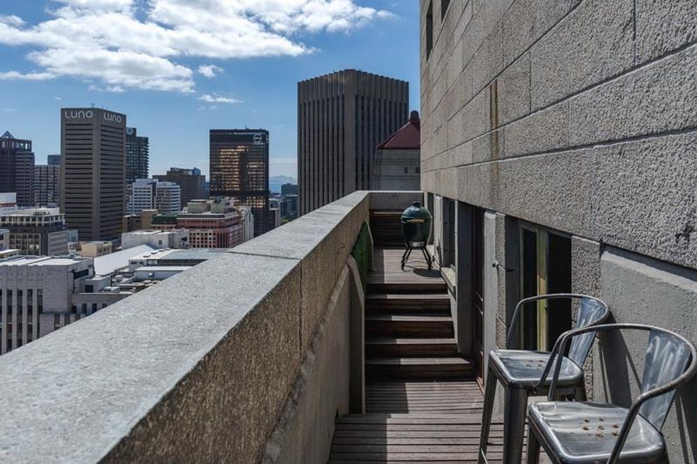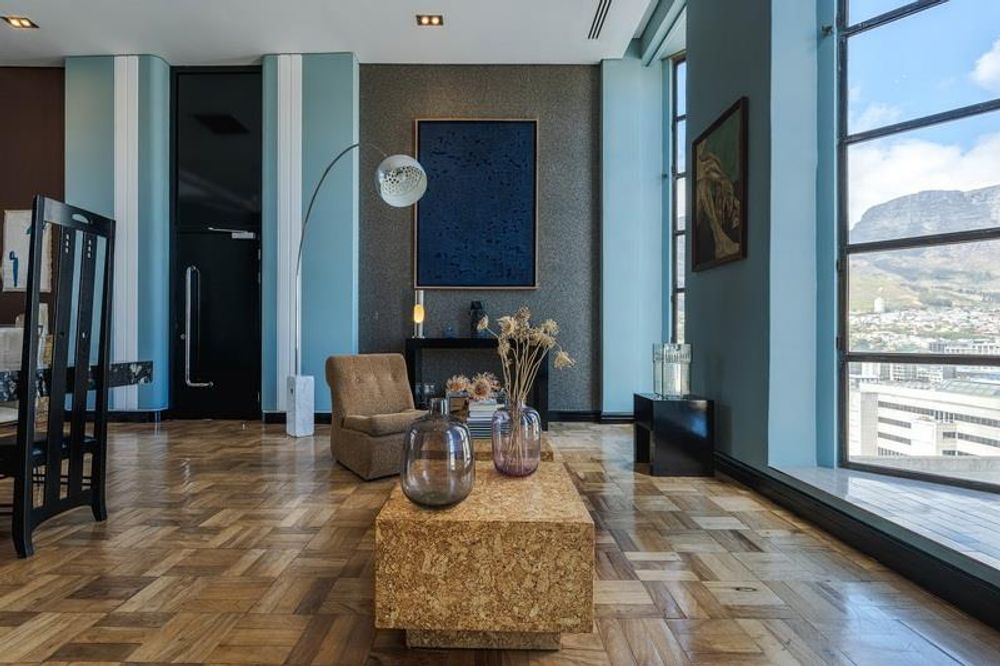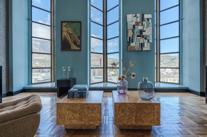 The first thing you notice is the light. Occupying the entire top floor with no neighbours above you, the apartment commands a full 360-degree perspective of Cape Town. You aren't just looking at a view; you are surrounded by it. To the front, you have the jagged, cinematic outline of Table Mountain. Turn around, and you see the harbour and the Atlantic Ocean stretching out to the horizon.