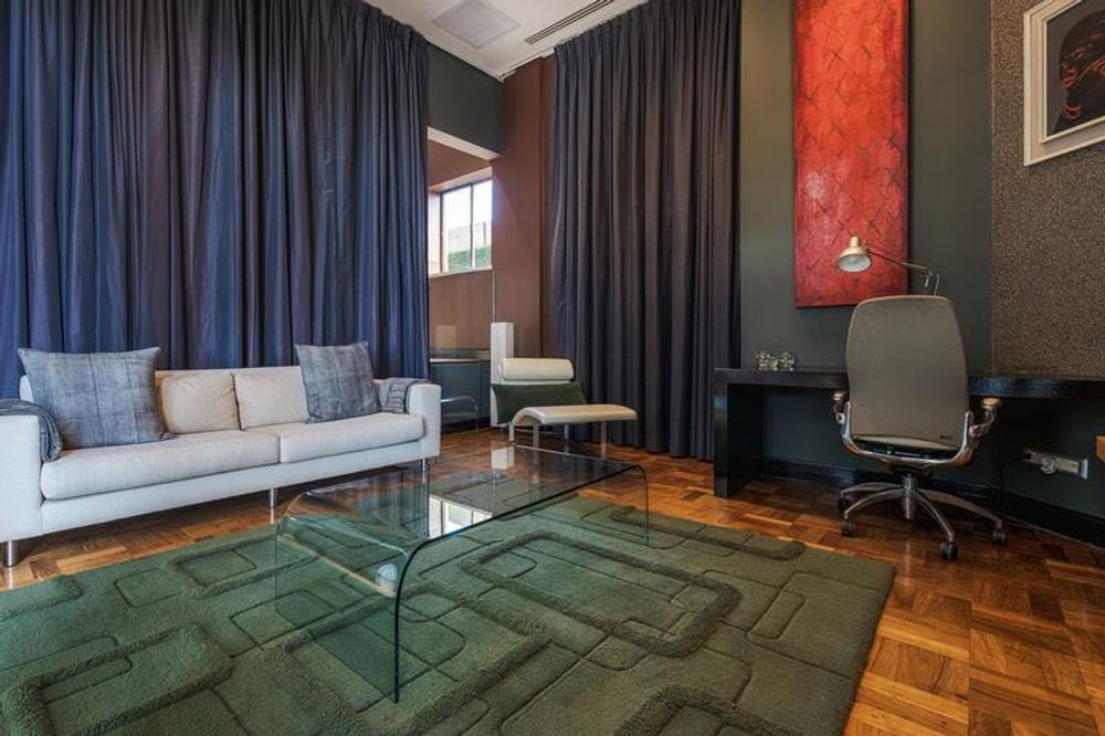 The flow of the home is designed to follow the sun. Two distinct balconies face East and West, allowing you to drink your coffee in the morning sun on one side and watch the city lights flicker on with a sunset cocktail on the other. Inside, the climate remains cool and controlled thanks to a brand-new air-conditioning system installed throughout. The interiors are a sophisticated blend of rare mid-century pieces and contemporary art, creating an atmosphere that is soft, grand, and inviting.