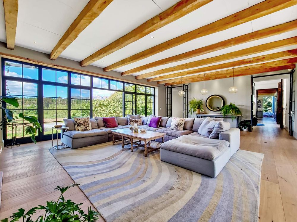 Your cares will melt away as you enter this contemporary sanctuary with sensational details that include double volume ceilings with exposed poplar beams, crackling fireplaces, striking colours, sunlight dancing over the timber flooring, glass doors opening to the patios which overlooking exquisite gardens, a charming circular pond and shimmering natural pool framed by floral colours and gently swaying trees - providing idyllic spaces to enjoy with family and friends whilst you revel in the panoramic mountain views and beautiful surroundings.