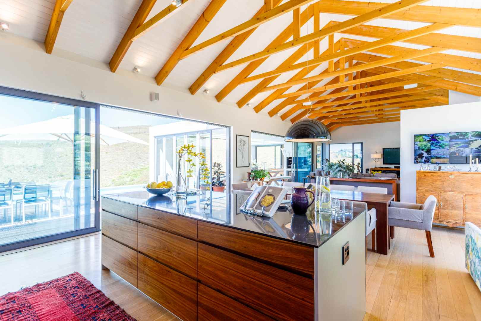 The open-plan living areas offer warmth and intimacy when only the family is at home and expansiveness when hosting guests.