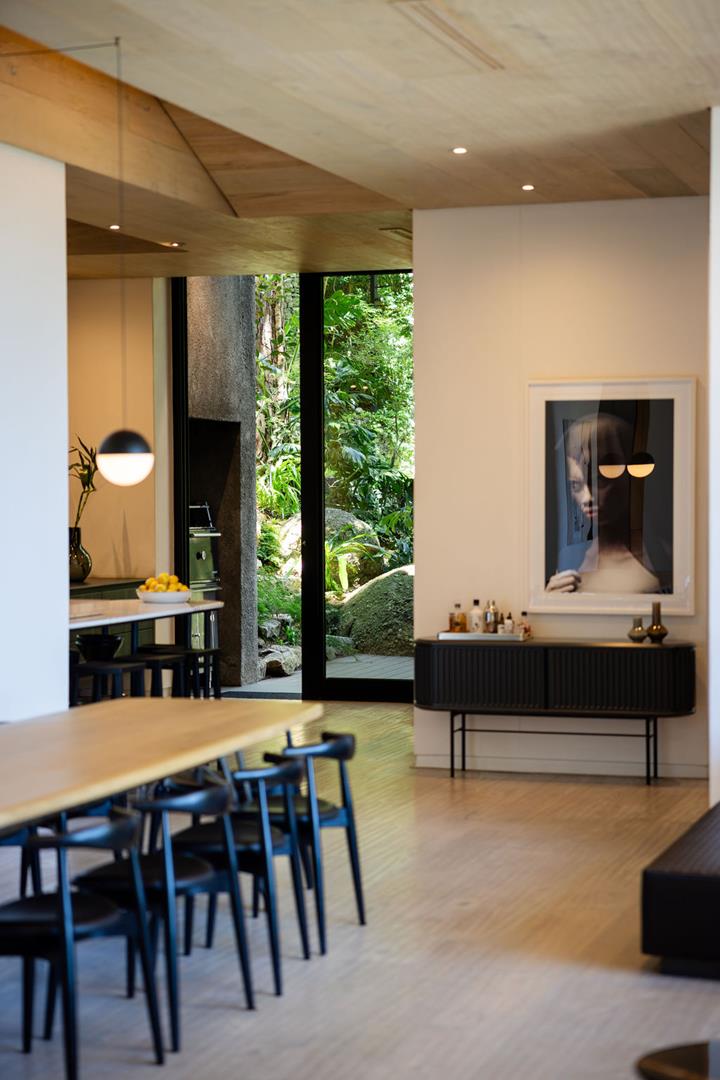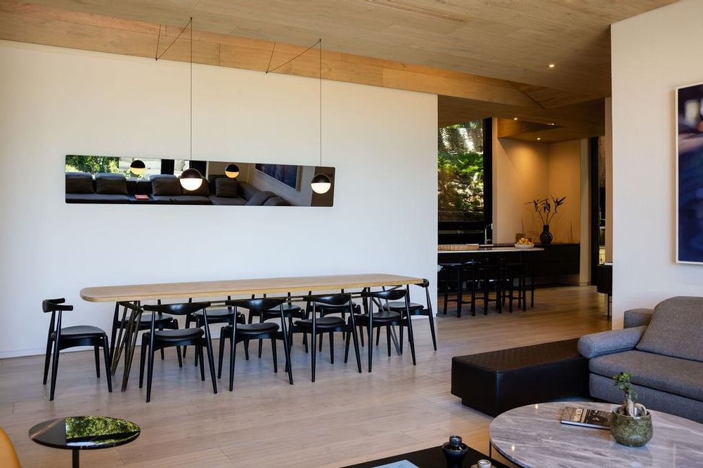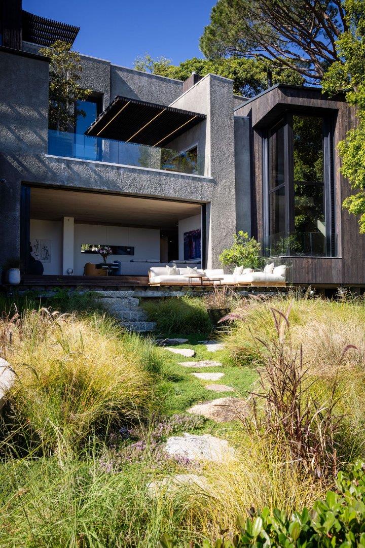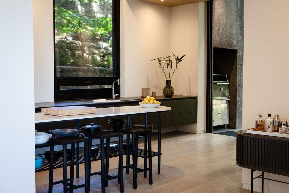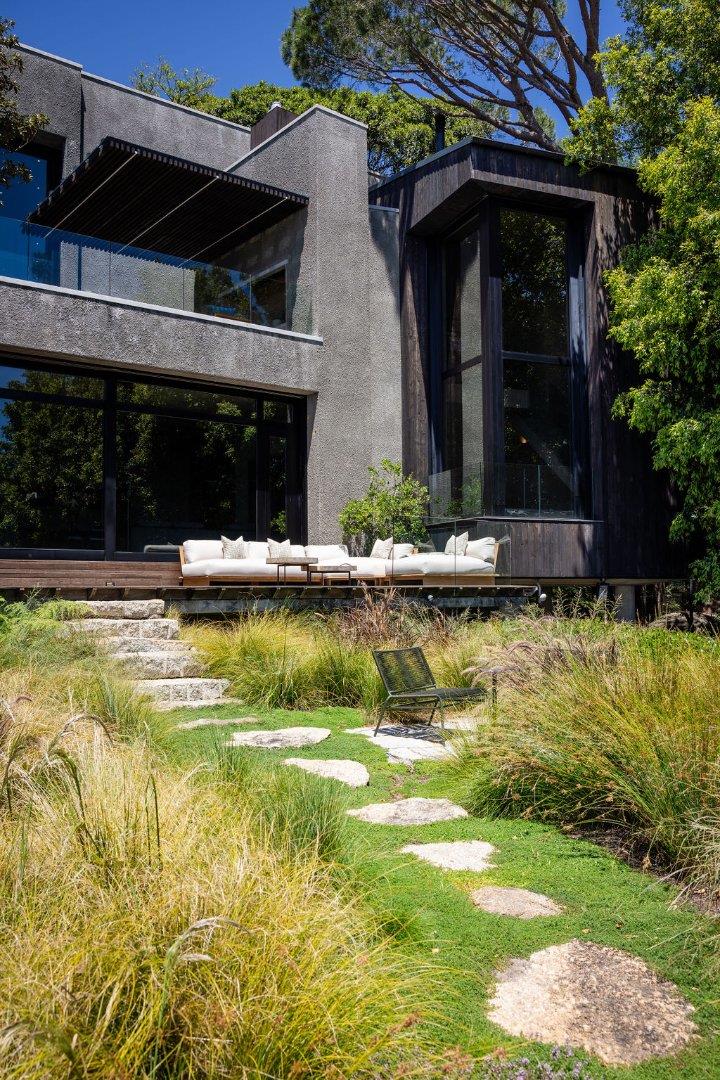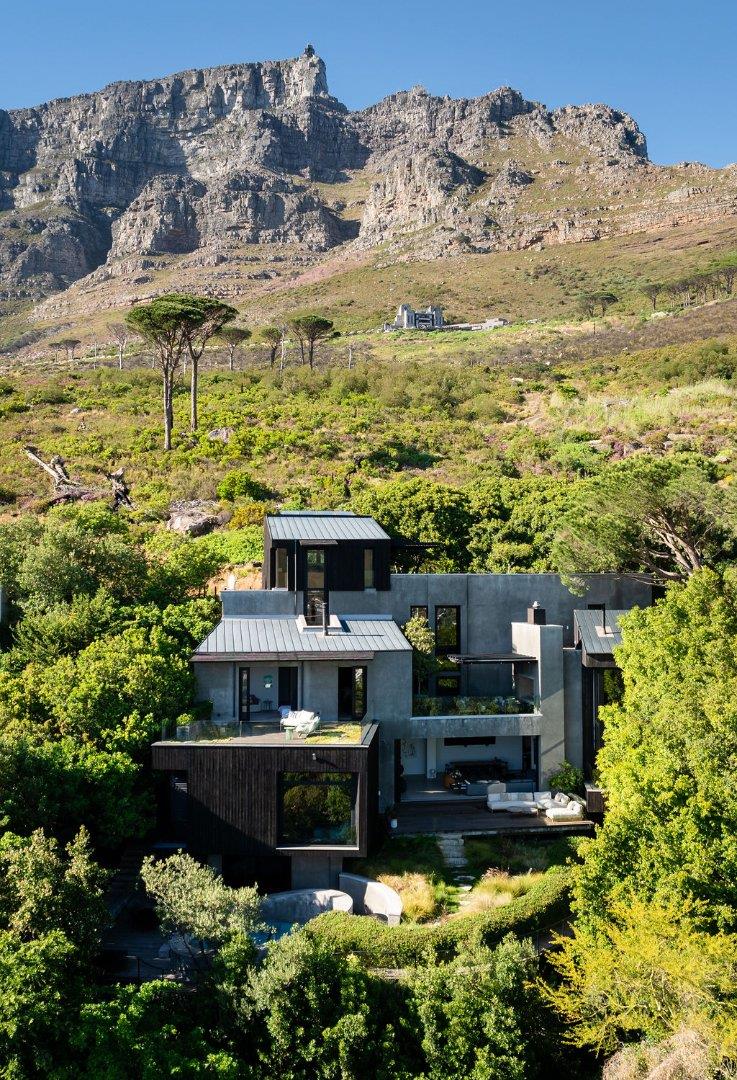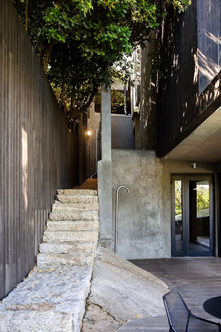 Inspired by the Japanese philosophy of "wabi-sabi," the house celebrates simplicity and the impermanence of nature. Designed by renowned architect Johann Slee, its name is a tribute to the principles of embracing beauty in imperfection and harmony with the environment. From the charred ‘shou sugi ban’ cladding to the granite stairways that lead to its entrance, every element has been meticulously crafted to honour this ethos. The result is a residence that feels organically tied to its Table Mountain Reserve setting, echoing the majestic cable car station above.