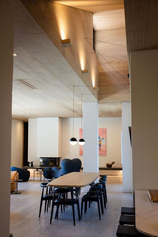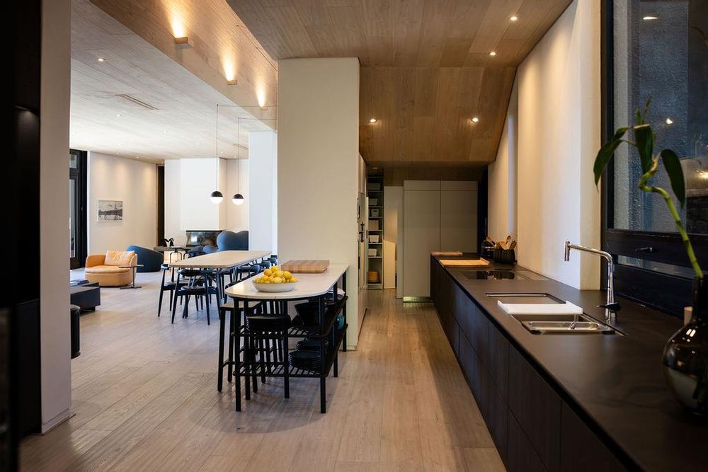 Elegant and Functional Design: Spanning 850 sqm under roof, the home balances expansive communal areas with intimate private spaces. The double-volume living and entertainment rooms are wrapped in engineered oak and feature awe-inspiring, seven-meter-tall windows. The bulthaup kitchen, with Gaggenau appliances and a wine cellar, is a culinary enthusiast’s dream.
