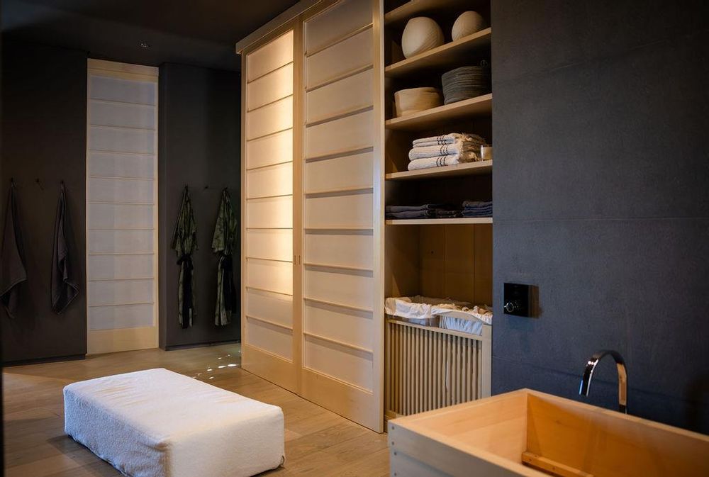 Restorative Comfort and Privacy: The master suite, complete with dual walk-in closets, exudes tranquillity. The en-suite bathroom features a Japanese hinoki soaking tub and granite basins, while an adjacent koi pond enhances the Zen-like atmosphere.
