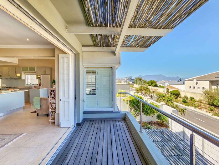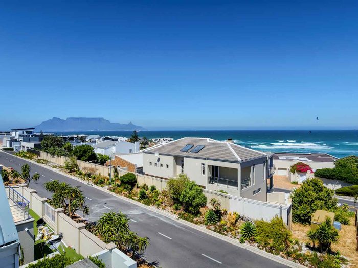 Five bedrooms, 5.5 bathrooms, 558 m² home with 3 garages and pool in Bloubergstrand Village, steps from the beach.