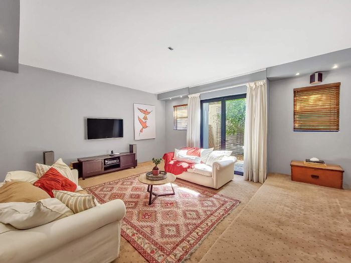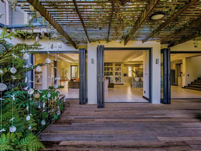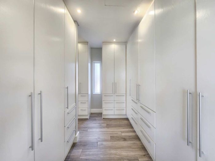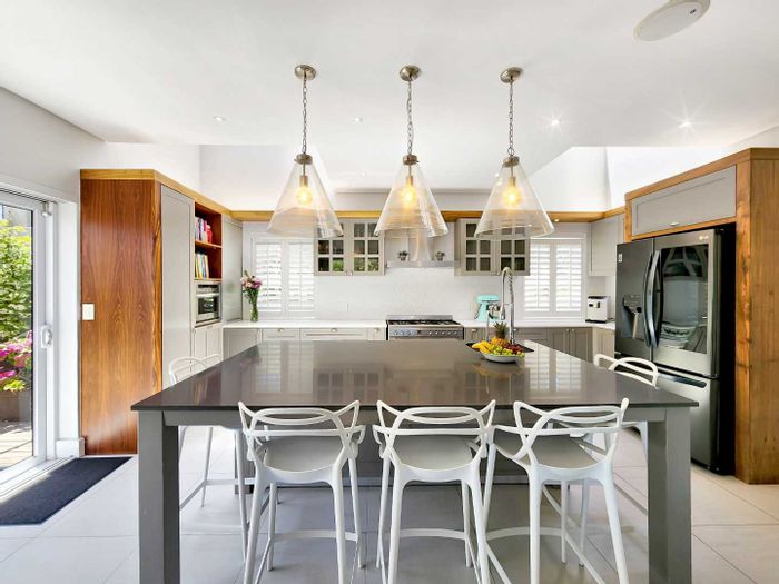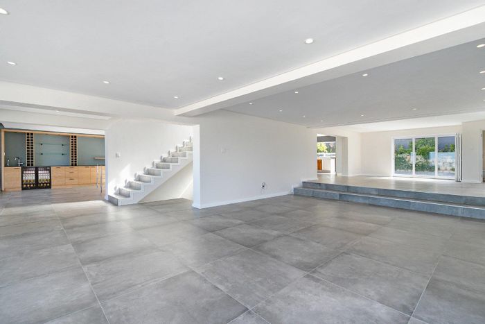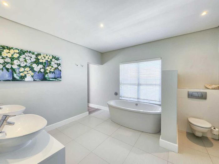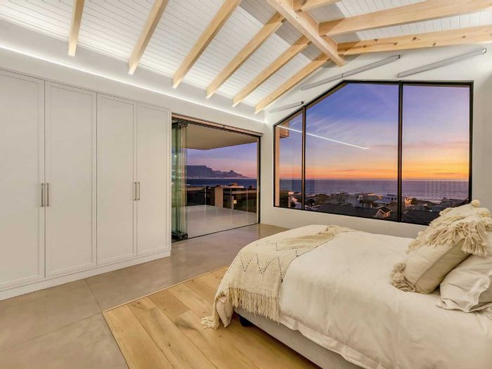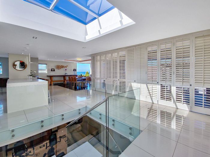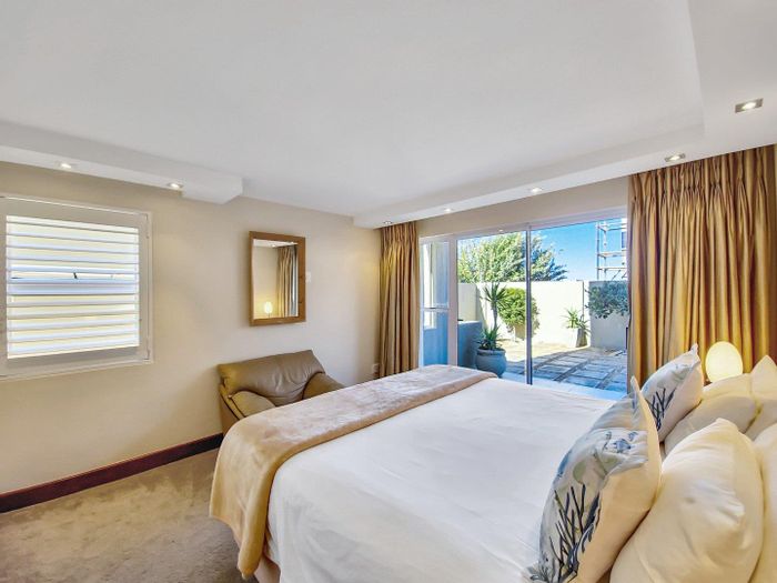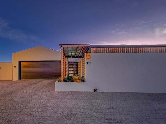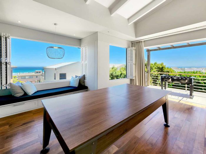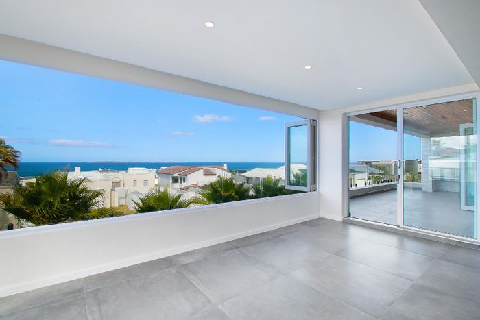 Five bedrooms, 5.5 bathrooms, 558 m² home with 3 garages and pool in Bloubergstrand Village, steps from the beach.