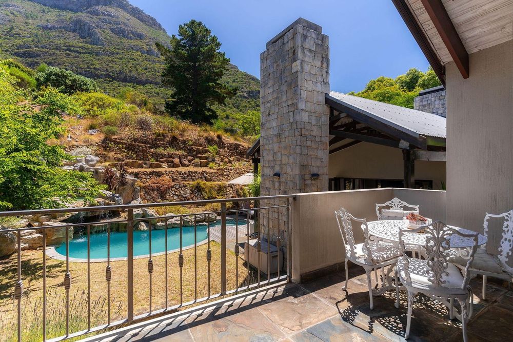 4 Bedrooms (2-ensuite, all North Facing with doors opening out to the pool and garden and incredible mountain views. The upstairs, main bedroom has doors opening to Southerly and Northerly balconies and views galore