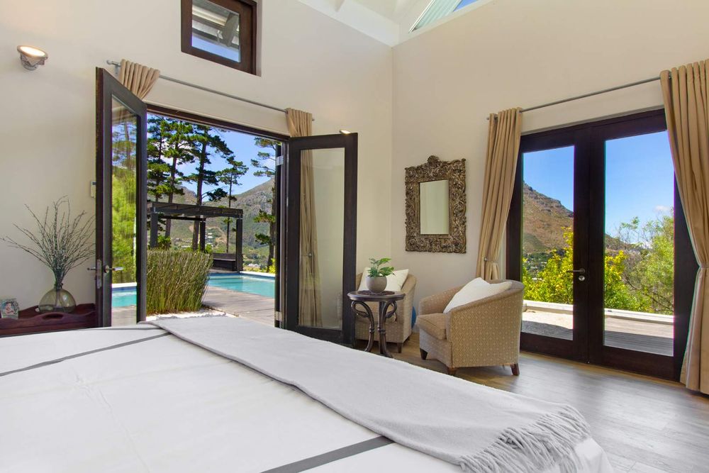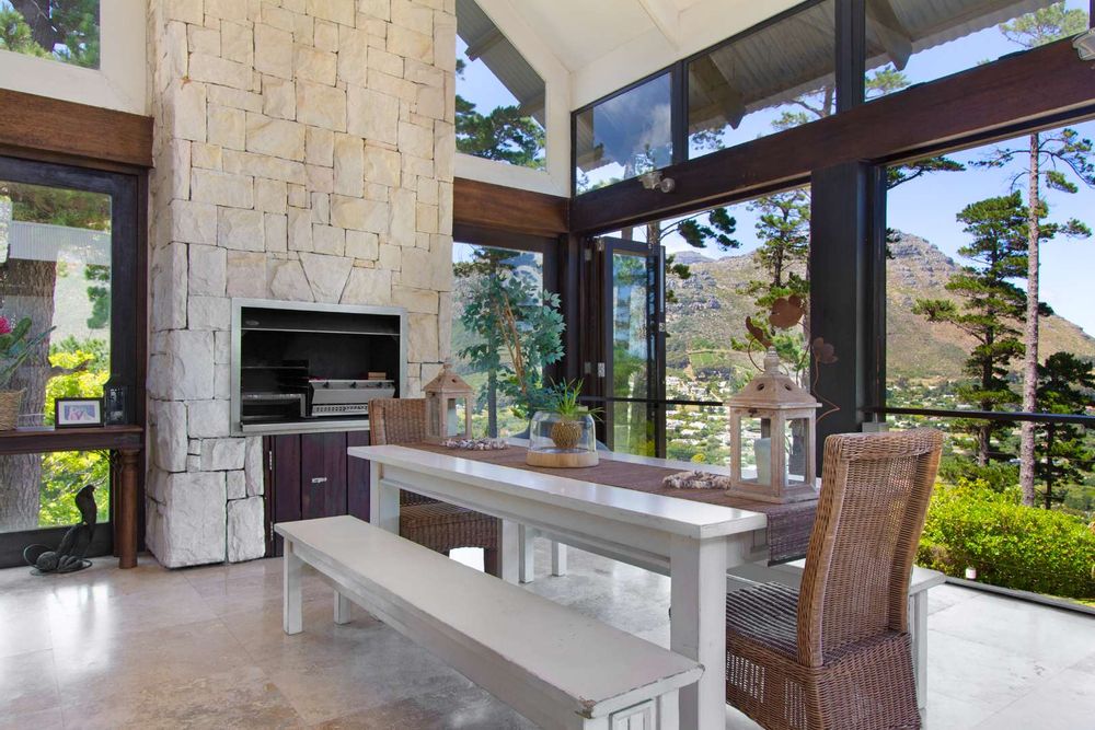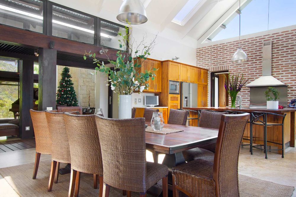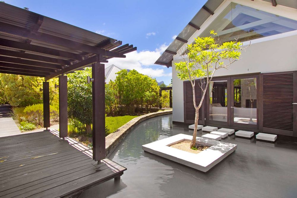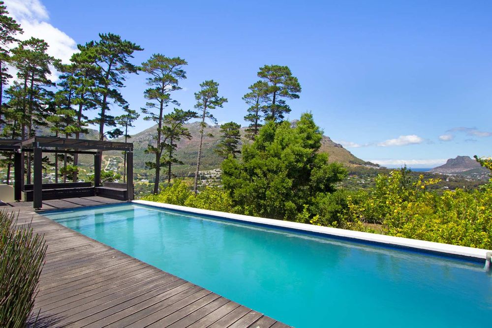 Be welcomed home over the shimmering koi fishpond walkway and to the front entrance which leads you through glamorous open plan receptions and out to the entertainment deck – complete with panoramic sea and mountain views over the exquisite indigenous gardens and turquoise pool.