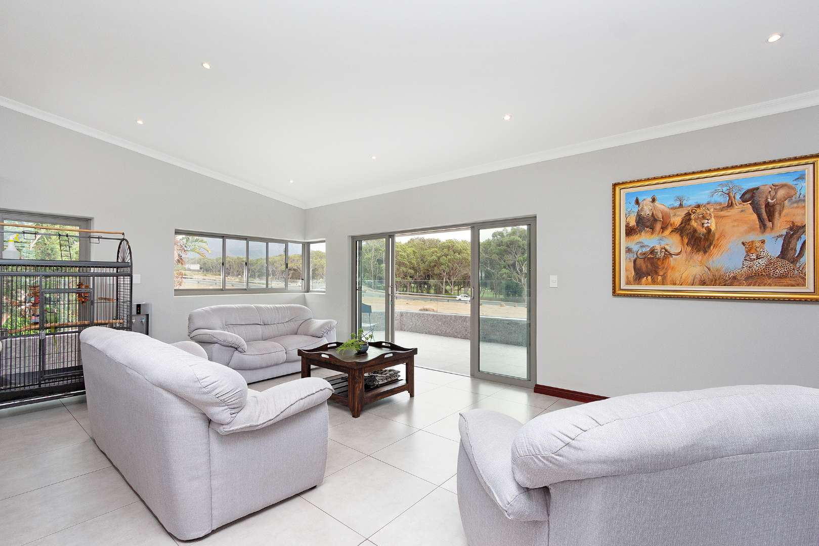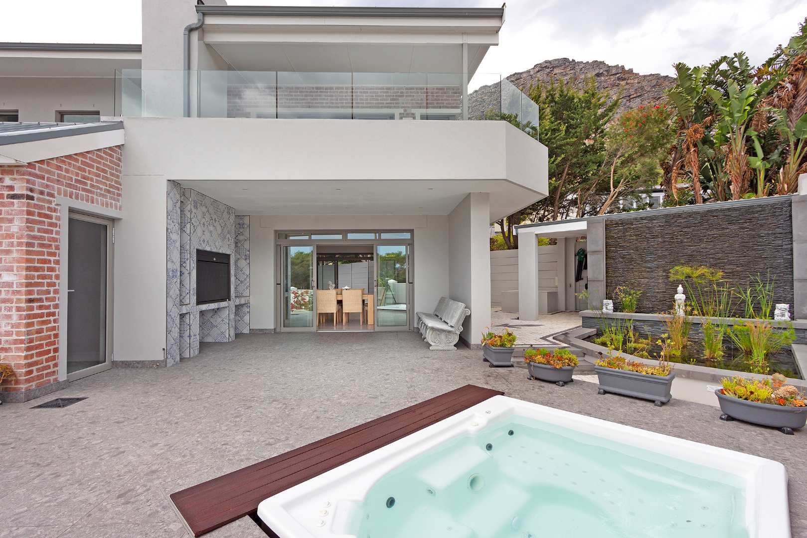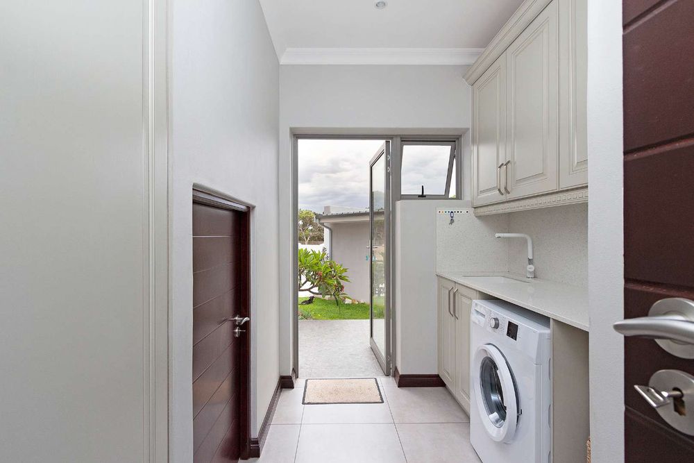 This amazing space includes several superb features such as double glazing, USB ports throughout, a three-phase electrical power system, a 250 litre Geyser - operated off a heat pump, a borehole (with pump and 2500 litre water storage tank which is electronically controlled), underfloor heating throughout the home, an electronically controlled pond, fibre throughout, plus a self-cleaning jacuzzi!