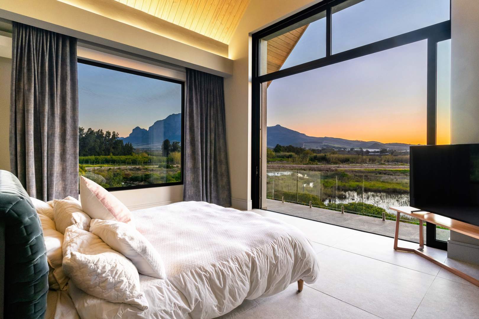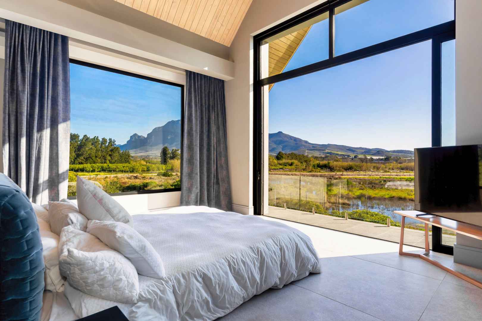 Nestled within the Gentleman’s Estate component of the prestigious Val de Vie Estate, this approximately 2.6-hectare property is an embodiment of serenity and style. With panoramic views of the majestic Simonsberg mountains, the current owner’s vision of creating a safe and private sanctuary for his family is fulfilled.