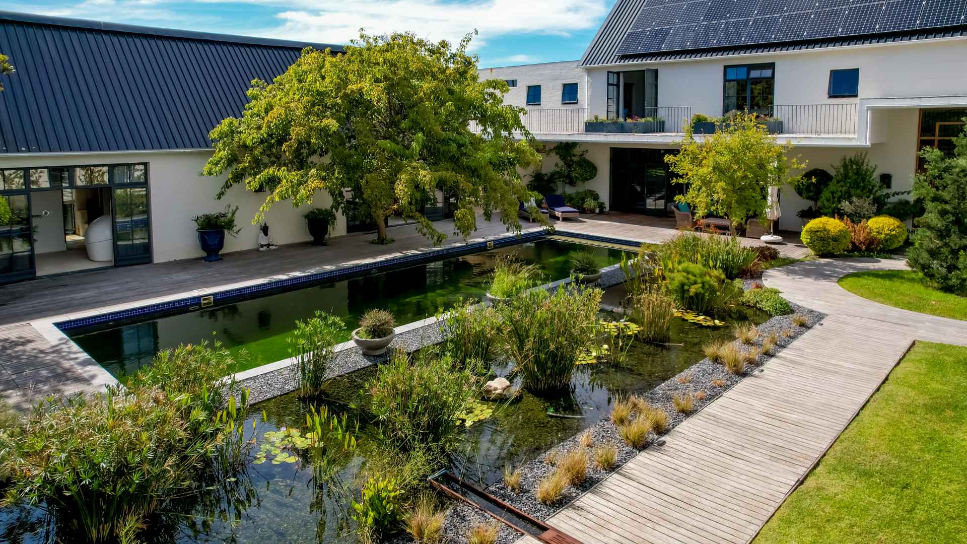 Your cares will melt away as you enter this contemporary sanctuary with sensational details that include double volume ceilings with exposed poplar beams, crackling fireplaces, striking colours, sunlight dancing over the timber flooring, glass doors opening to the patios which overlooking exquisite gardens, a charming circular pond and shimmering natural pool framed by floral colours and gently swaying trees - providing idyllic spaces to enjoy with family and friends whilst you revel in the panoramic mountain views and beautiful surroundings.