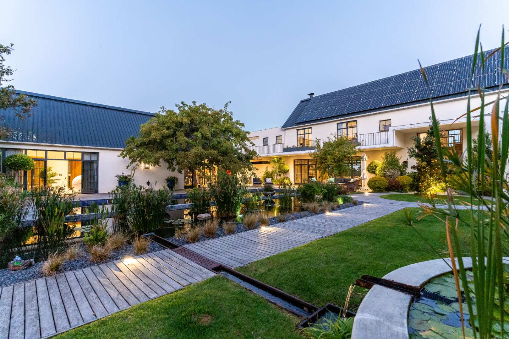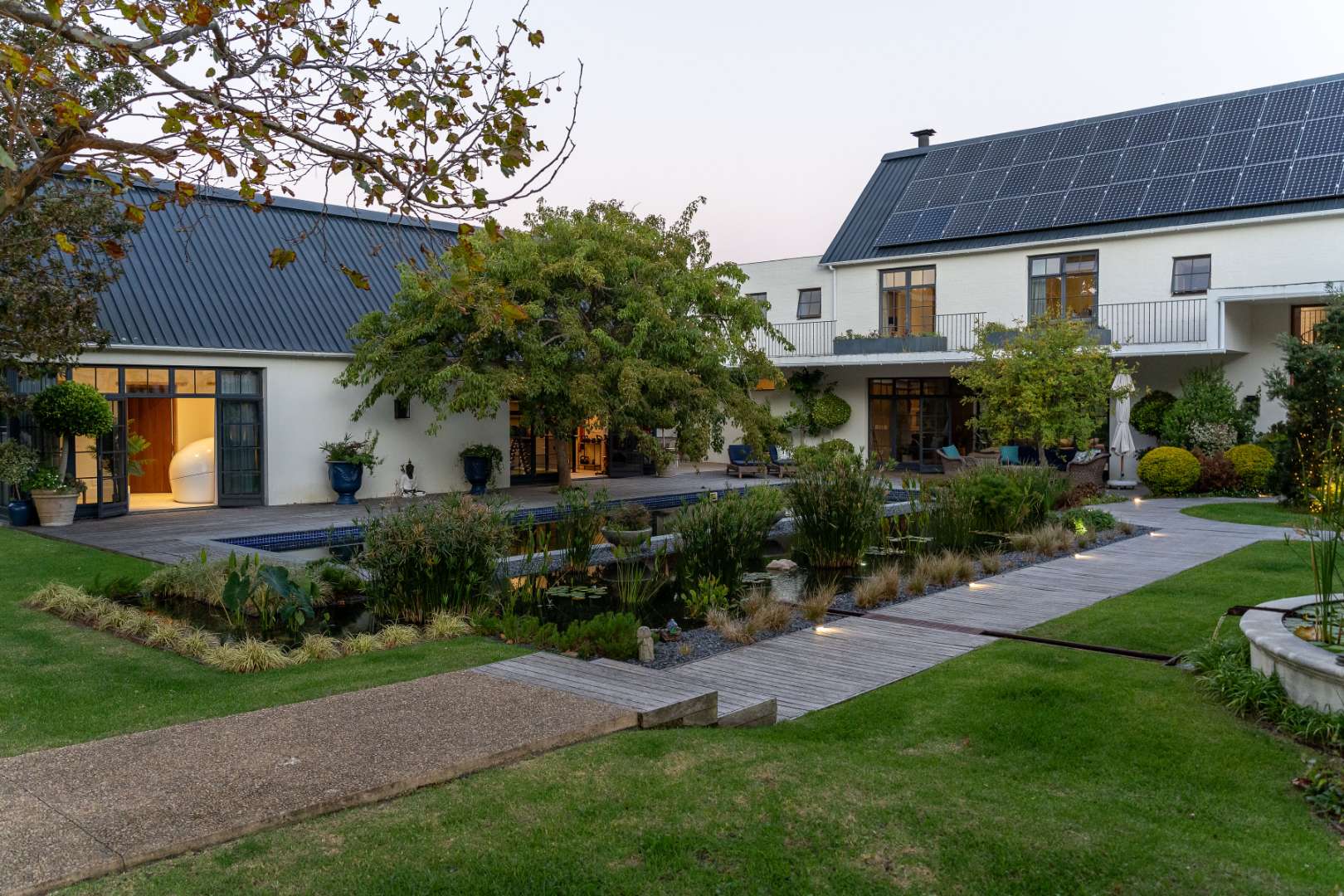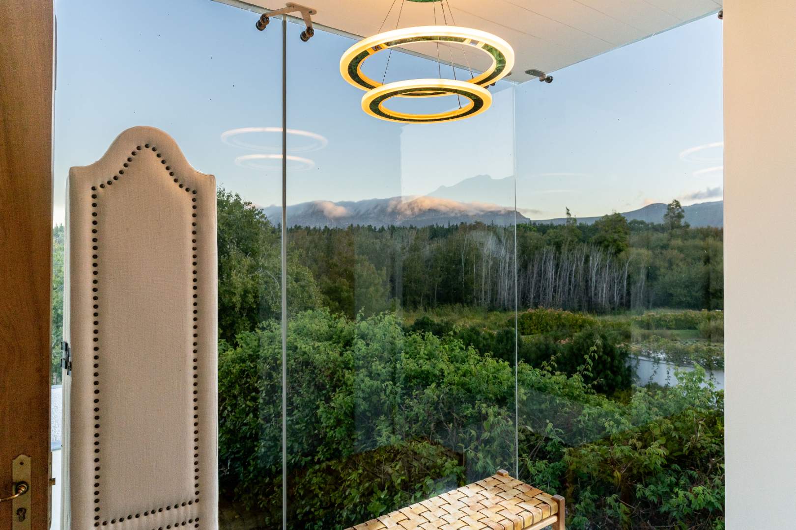 Your cares will melt away as you enter this contemporary sanctuary with sensational details that include double volume ceilings with exposed poplar beams, crackling fireplaces, striking colours, sunlight dancing over the timber flooring, glass doors opening to the patios which overlooking exquisite gardens, a charming circular pond and shimmering natural pool framed by floral colours and gently swaying trees - providing idyllic spaces to enjoy with family and friends whilst you revel in the panoramic mountain views and beautiful surroundings.