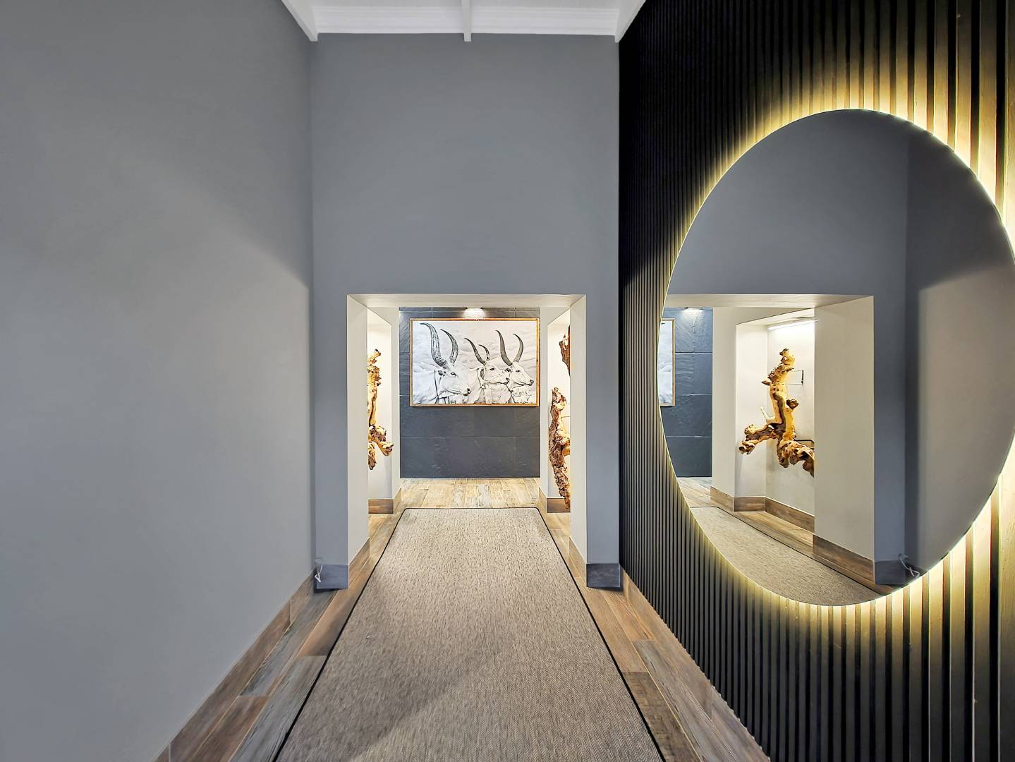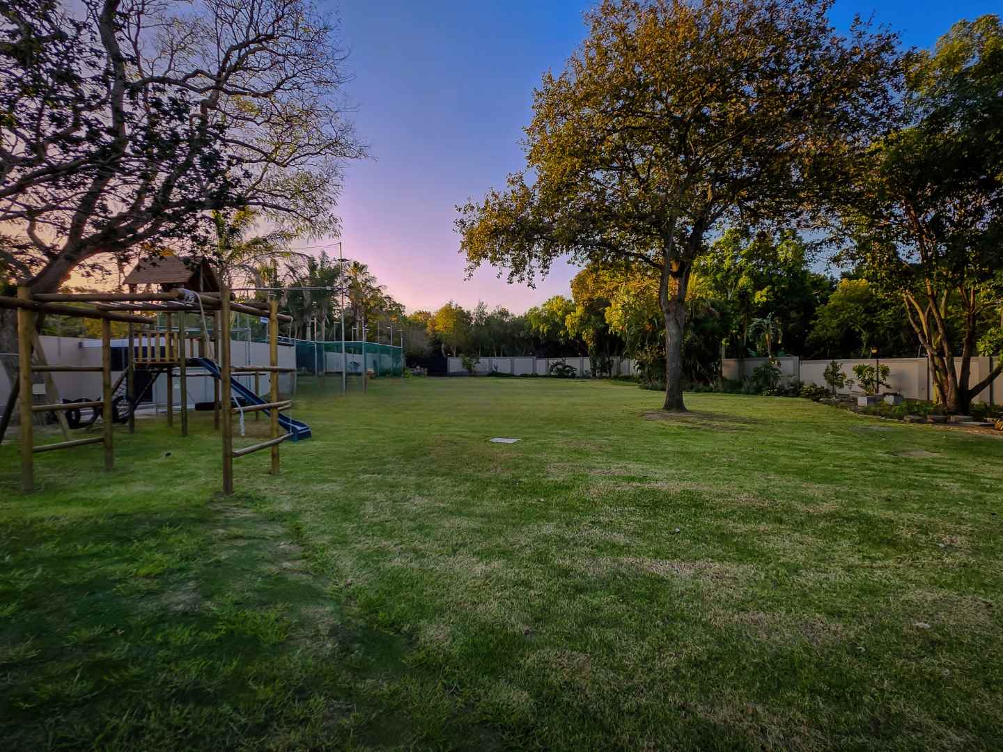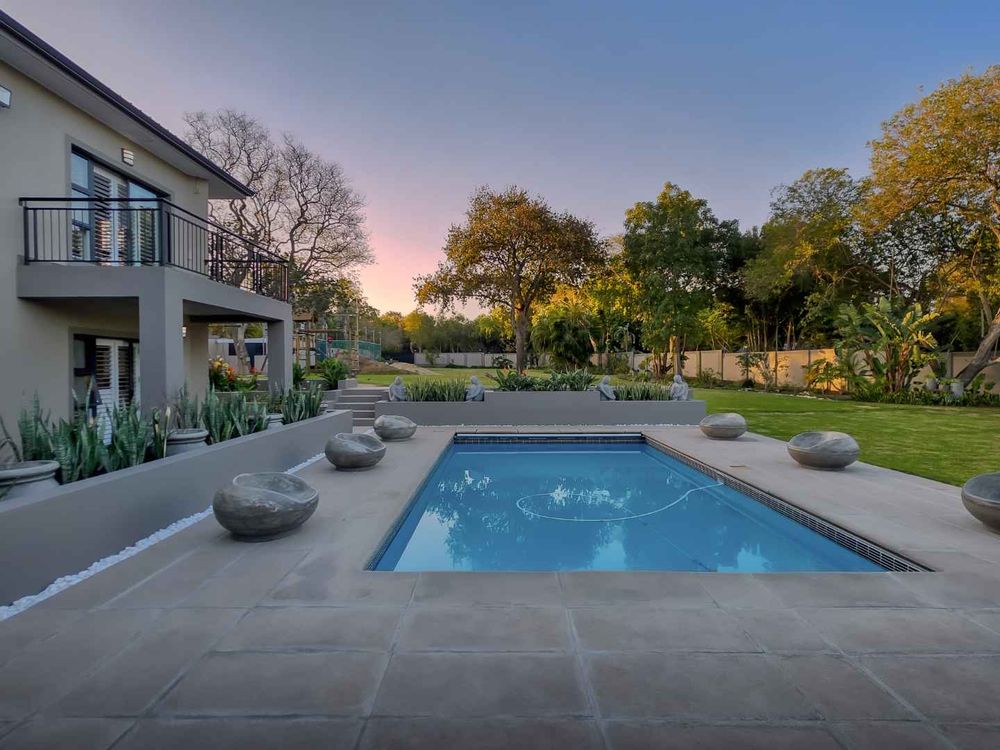 Practicality has not been forgotten either. A scullery, separate laundry and outside staff room keep the “behind-the-scenes” of your home running smoothly. For the kids, this is freedom in its purest form. Expansive lawns stretch out, offering endless space for children to run, play, and explore. A jungle gym, cricket pitch, and sandpit ensure there’s always something to do.