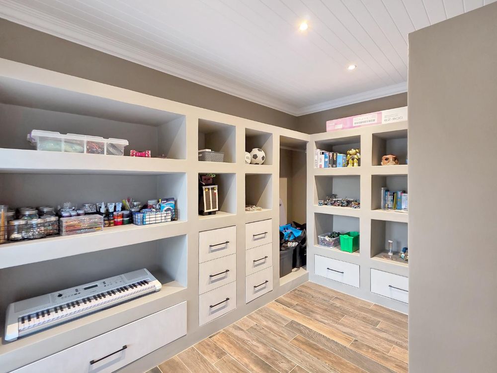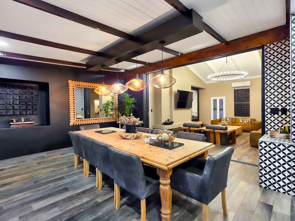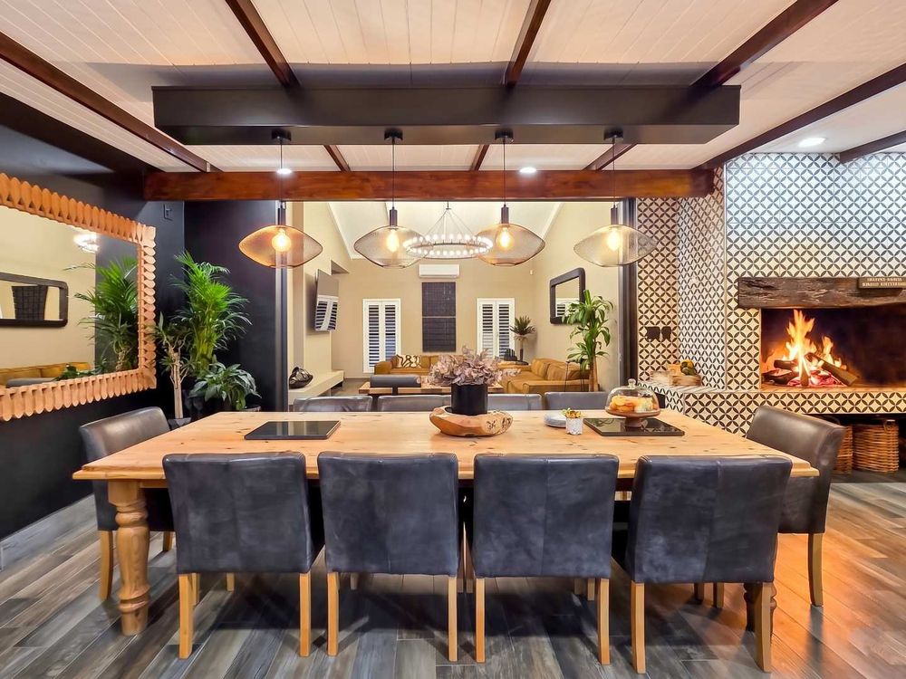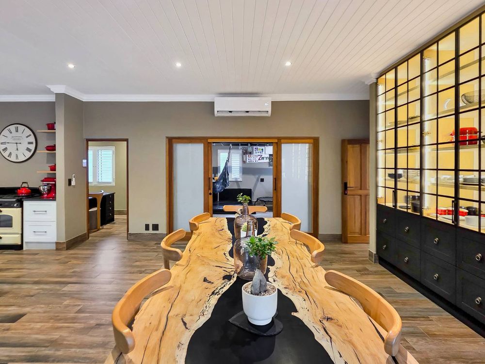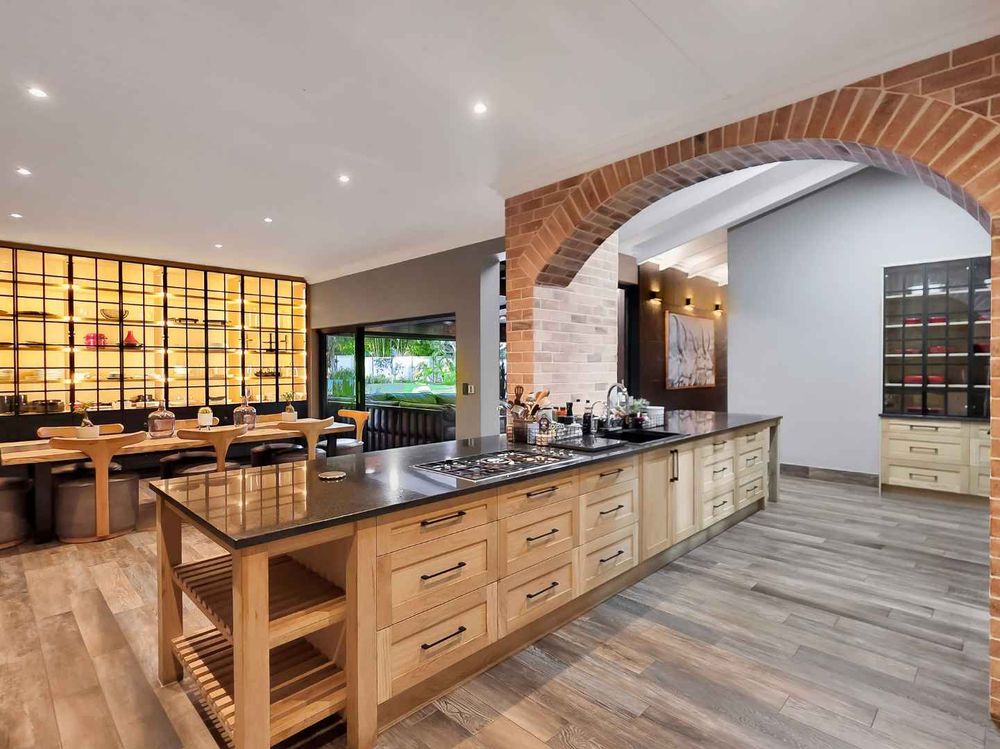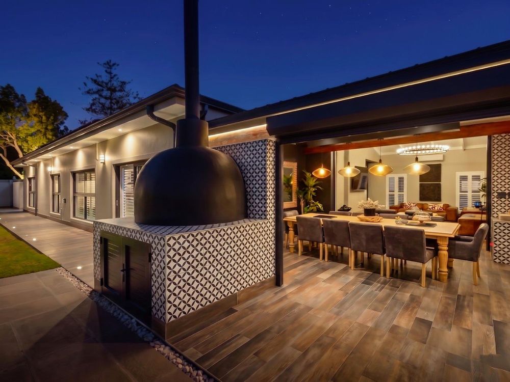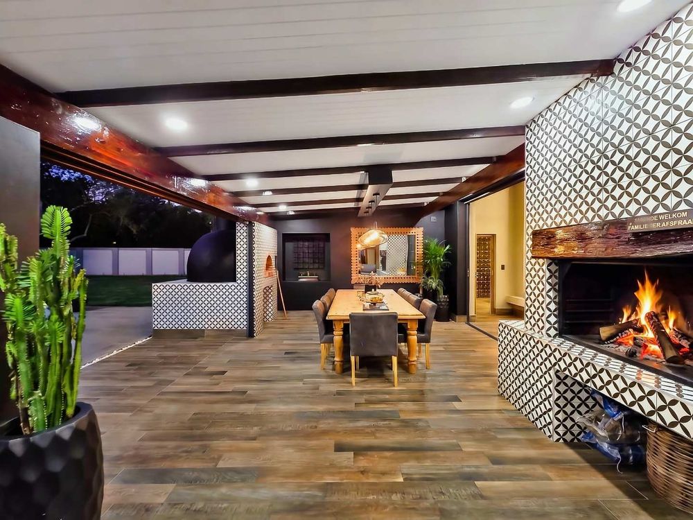 At the center of this home is a gourmet kitchen and while meals are prepared it invites everyone to pull up a chair and join the conversations. The open plan kitchen and spacious dinning room flows effortlessly onto the entertainment area that truly lives for the seasons. Whether you’re hosting a summer pool party or settling for a cozy winter evening, this space adapts with you. Simply close the automatic blinds, fire up the built-in braai or let the scent of pizza from your own pizza oven fill the air.