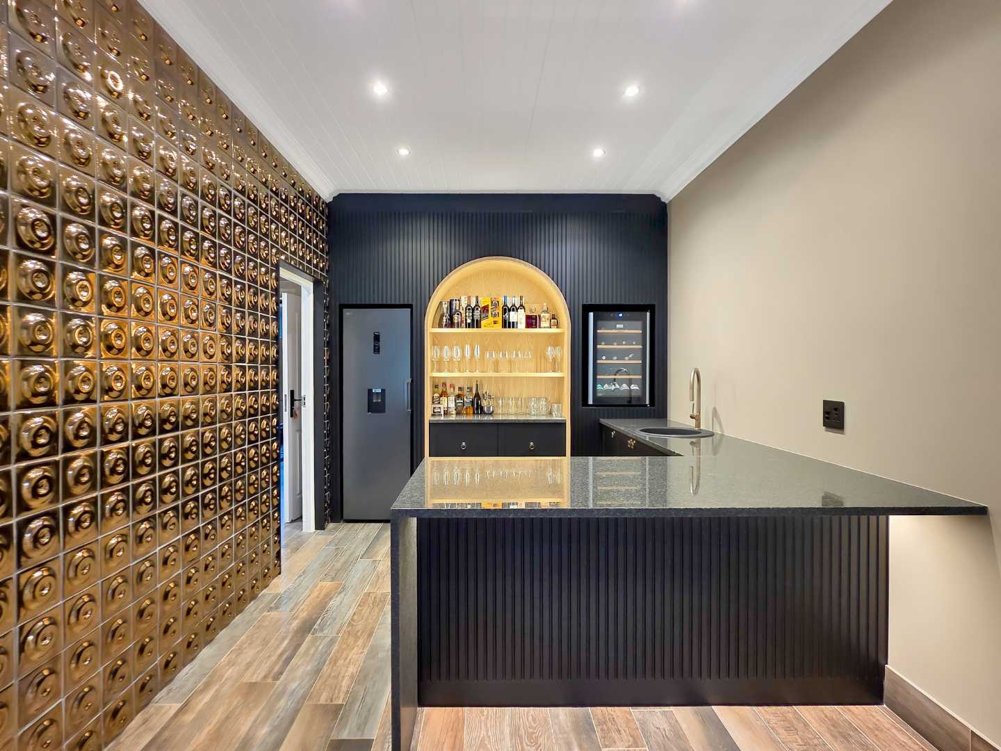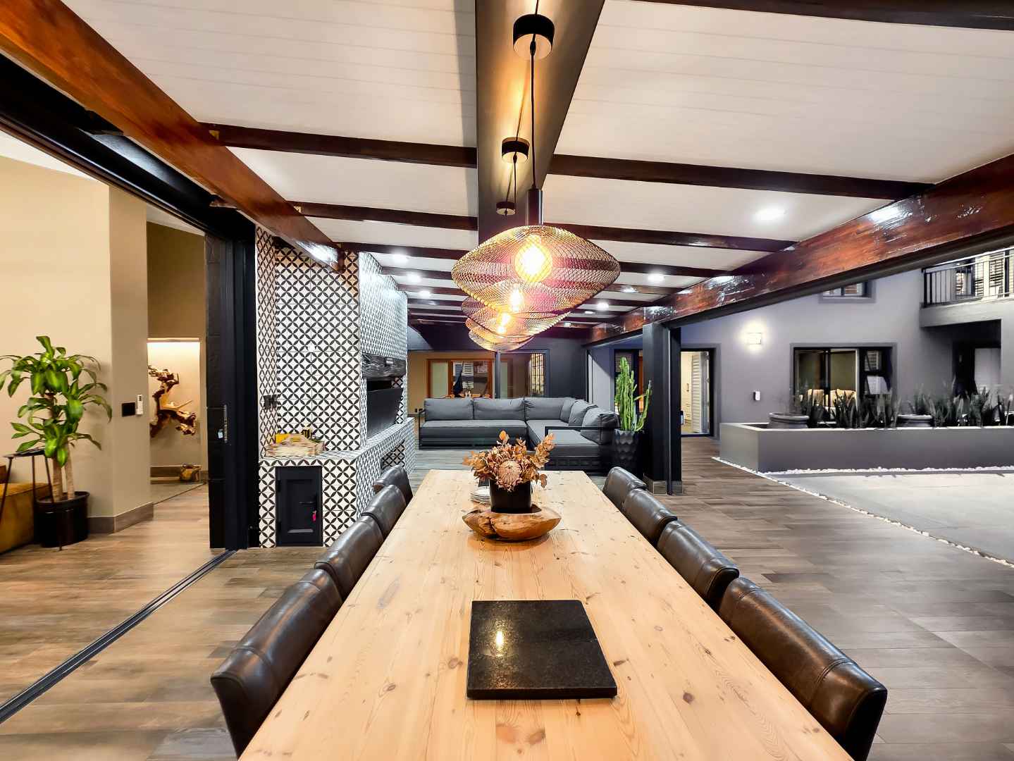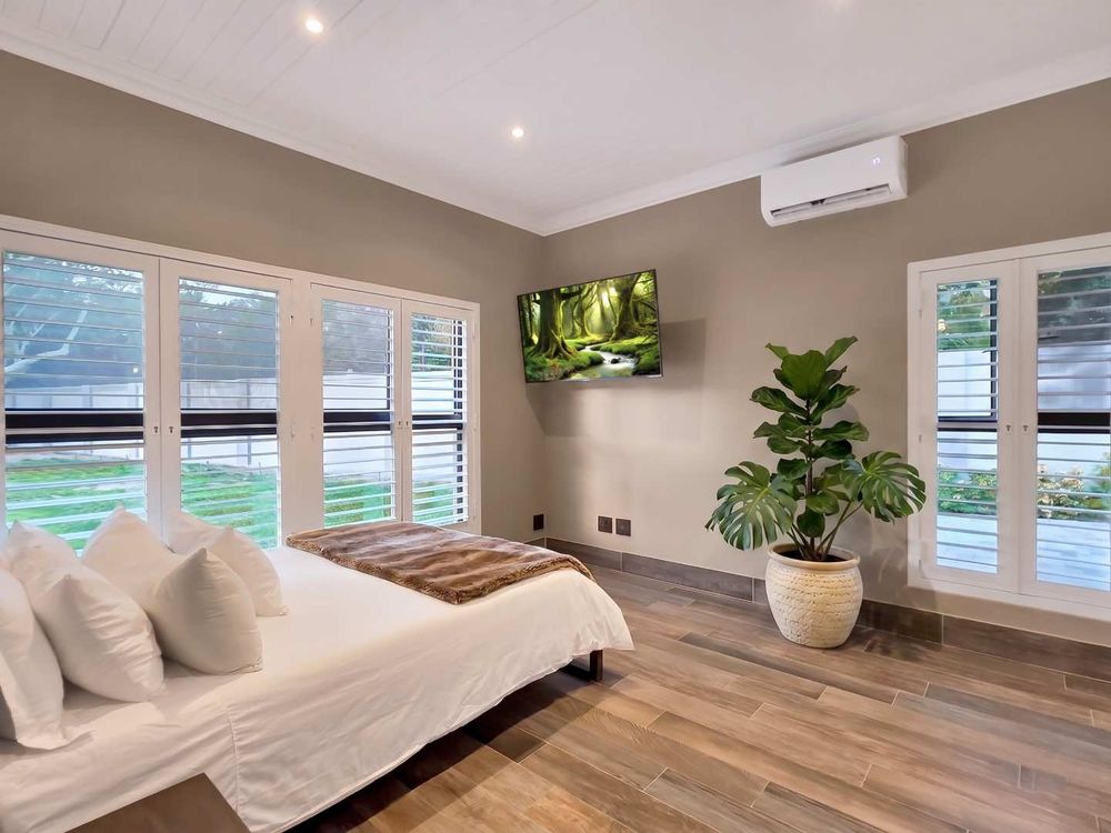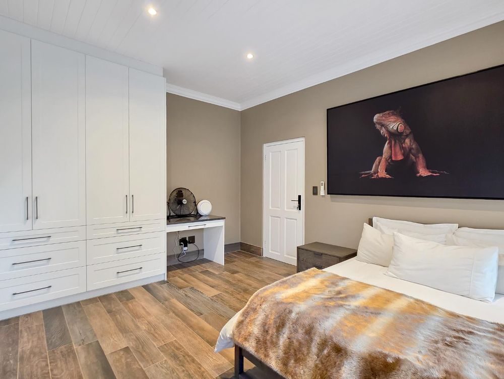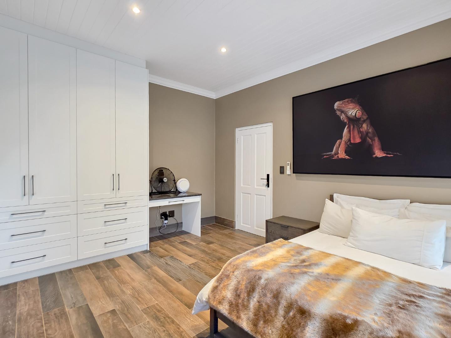 At the center of this home is a gourmet kitchen and while meals are prepared it invites everyone to pull up a chair and join the conversations. The open plan kitchen and spacious dinning room flows effortlessly onto the entertainment area that truly lives for the seasons. Whether you’re hosting a summer pool party or settling for a cozy winter evening, this space adapts with you. Simply close the automatic blinds, fire up the built-in braai or let the scent of pizza from your own pizza oven fill the air.