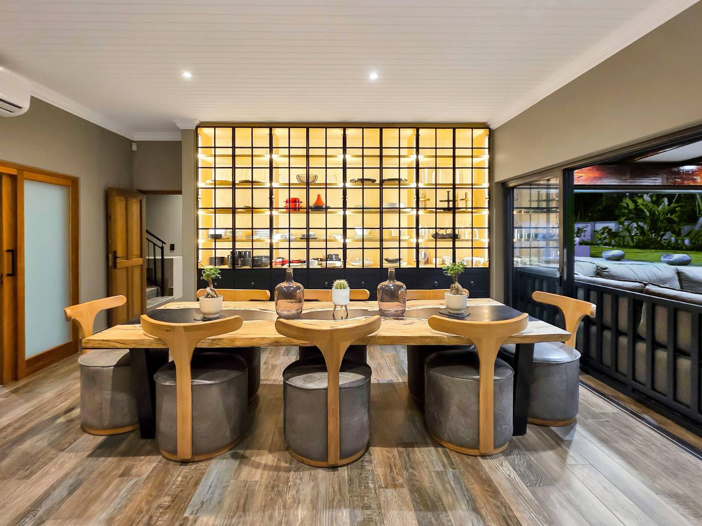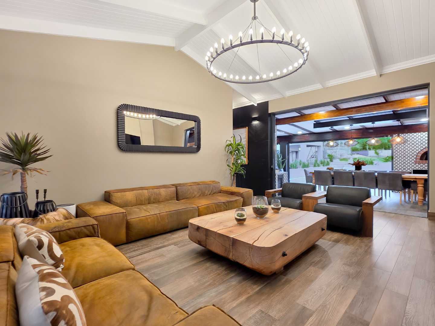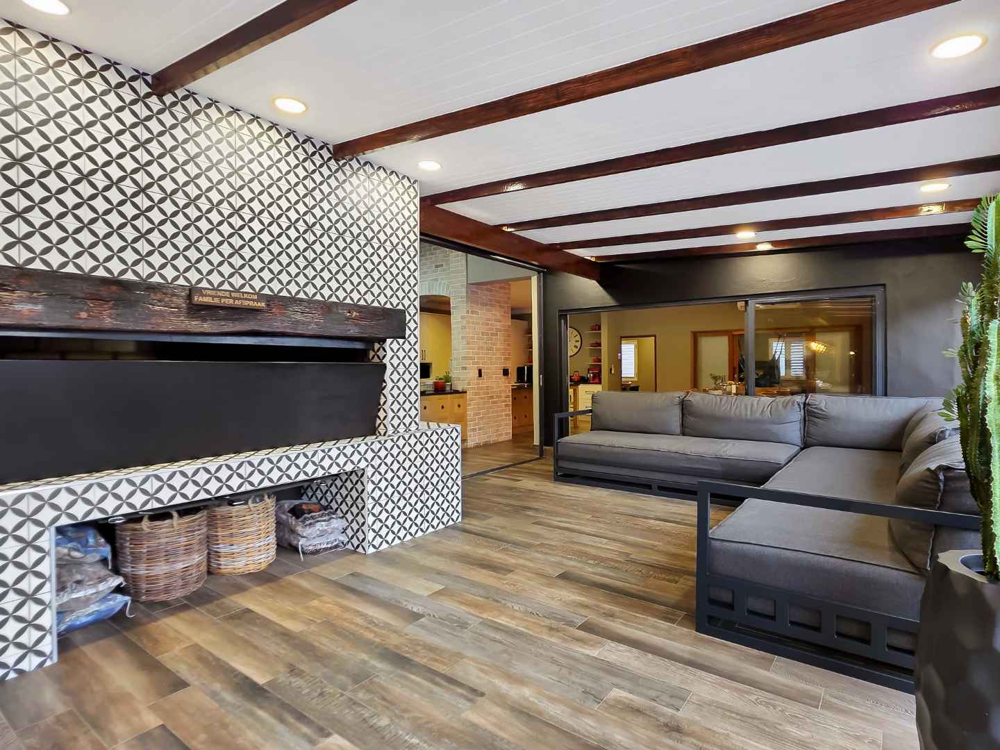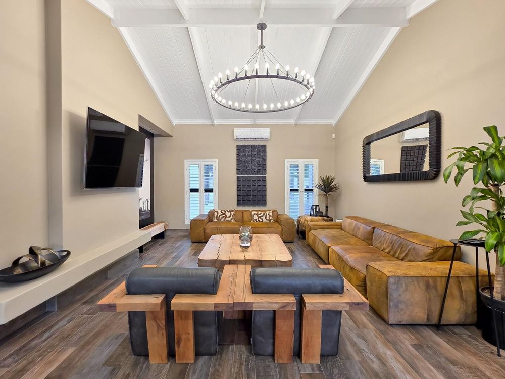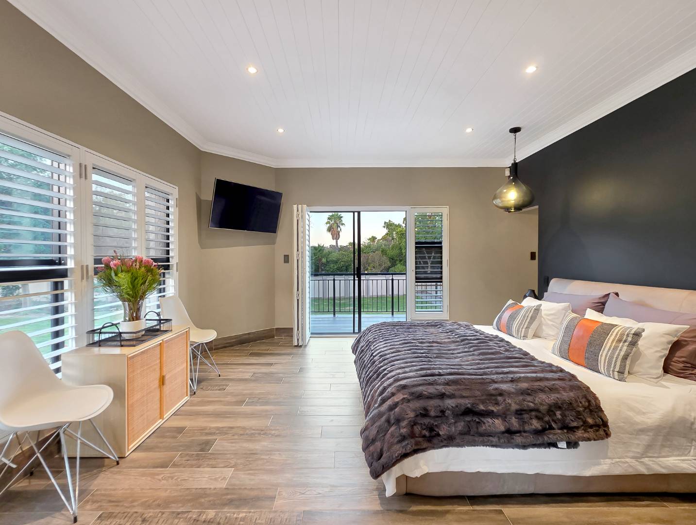 At the center of this home is a gourmet kitchen and while meals are prepared it invites everyone to pull up a chair and join the conversations. The open plan kitchen and spacious dinning room flows effortlessly onto the entertainment area that truly lives for the seasons. Whether you’re hosting a summer pool party or settling for a cozy winter evening, this space adapts with you. Simply close the automatic blinds, fire up the built-in braai or let the scent of pizza from your own pizza oven fill the air.