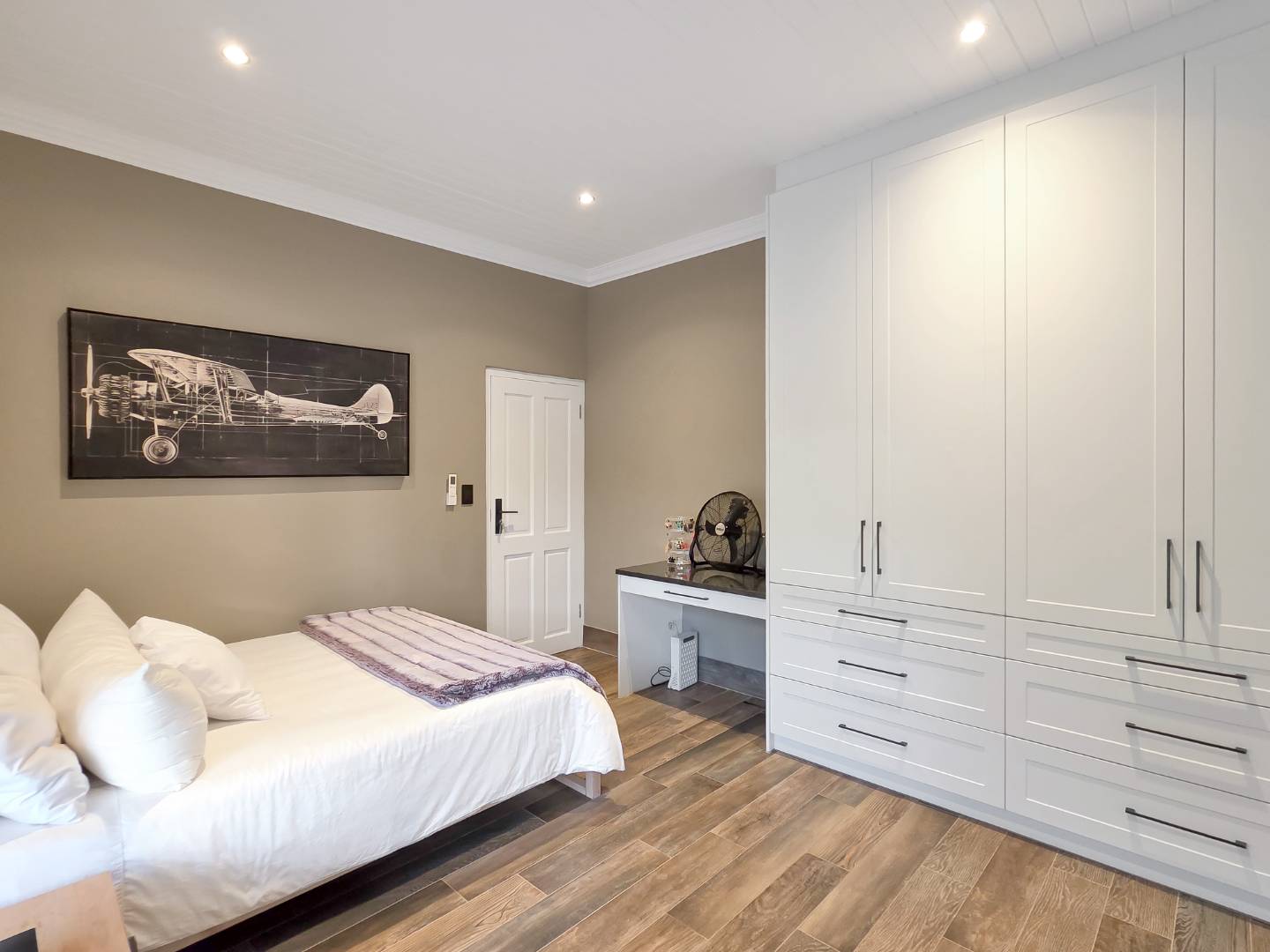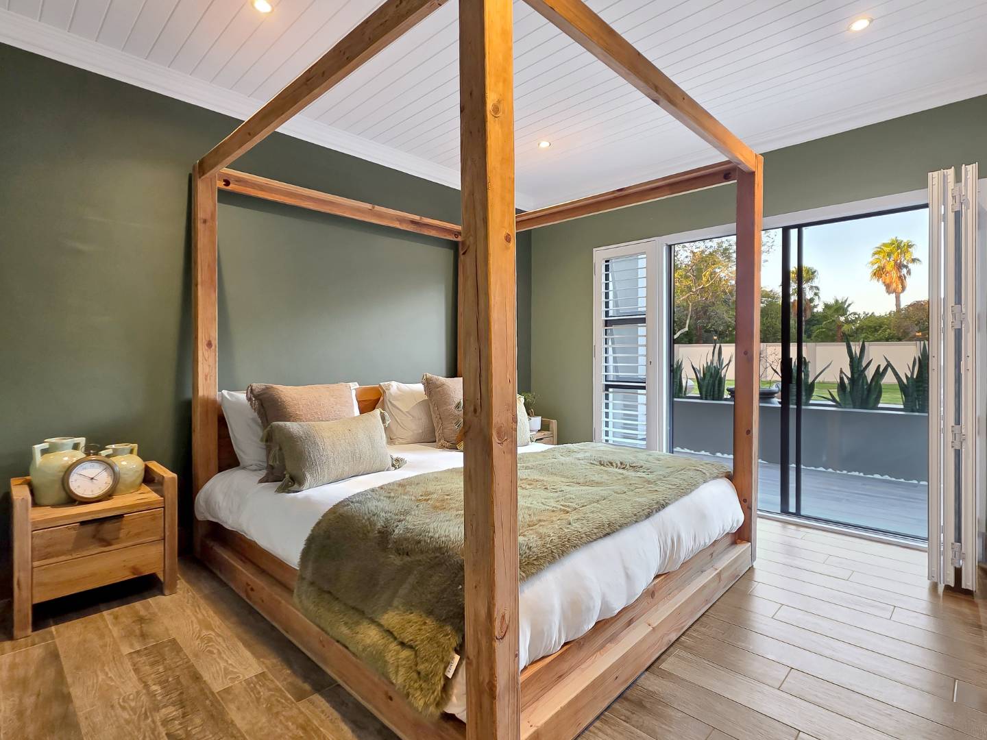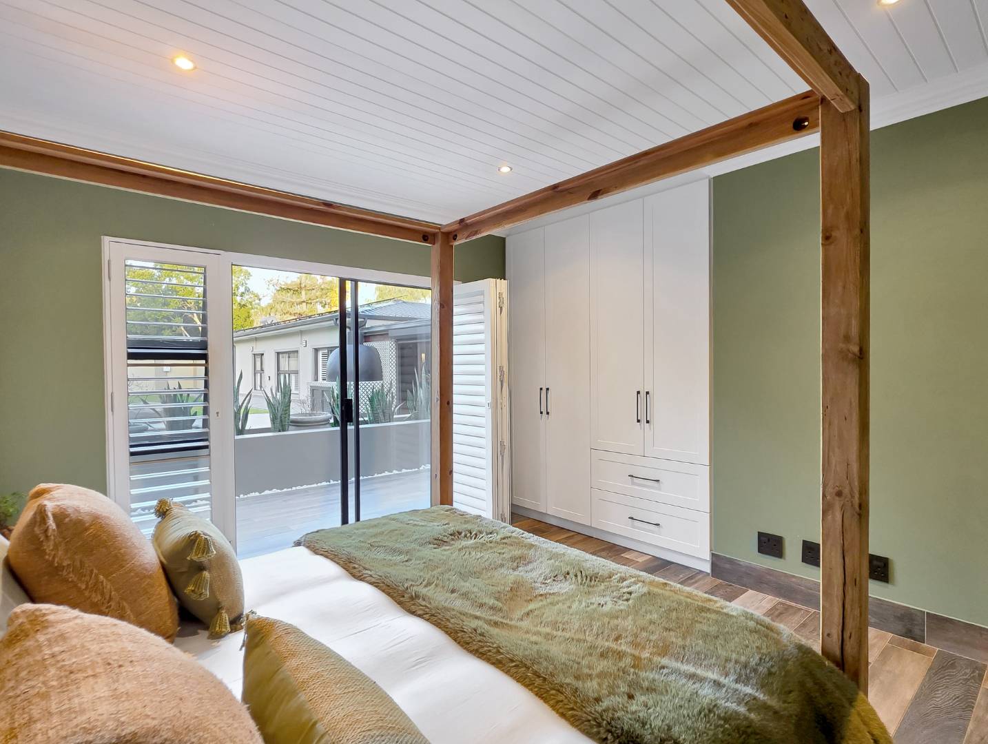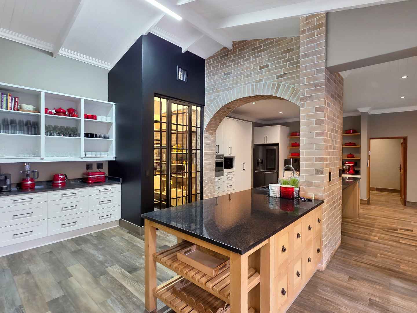At the center of this home is a gourmet kitchen and while meals are prepared it invites everyone to pull up a chair and join the conversations. The open plan kitchen and spacious dinning room flows effortlessly onto the entertainment area that truly lives for the seasons. Whether you’re hosting a summer pool party or settling for a cozy winter evening, this space adapts with you. Simply close the automatic blinds, fire up the built-in braai or let the scent of pizza from your own pizza oven fill the air.