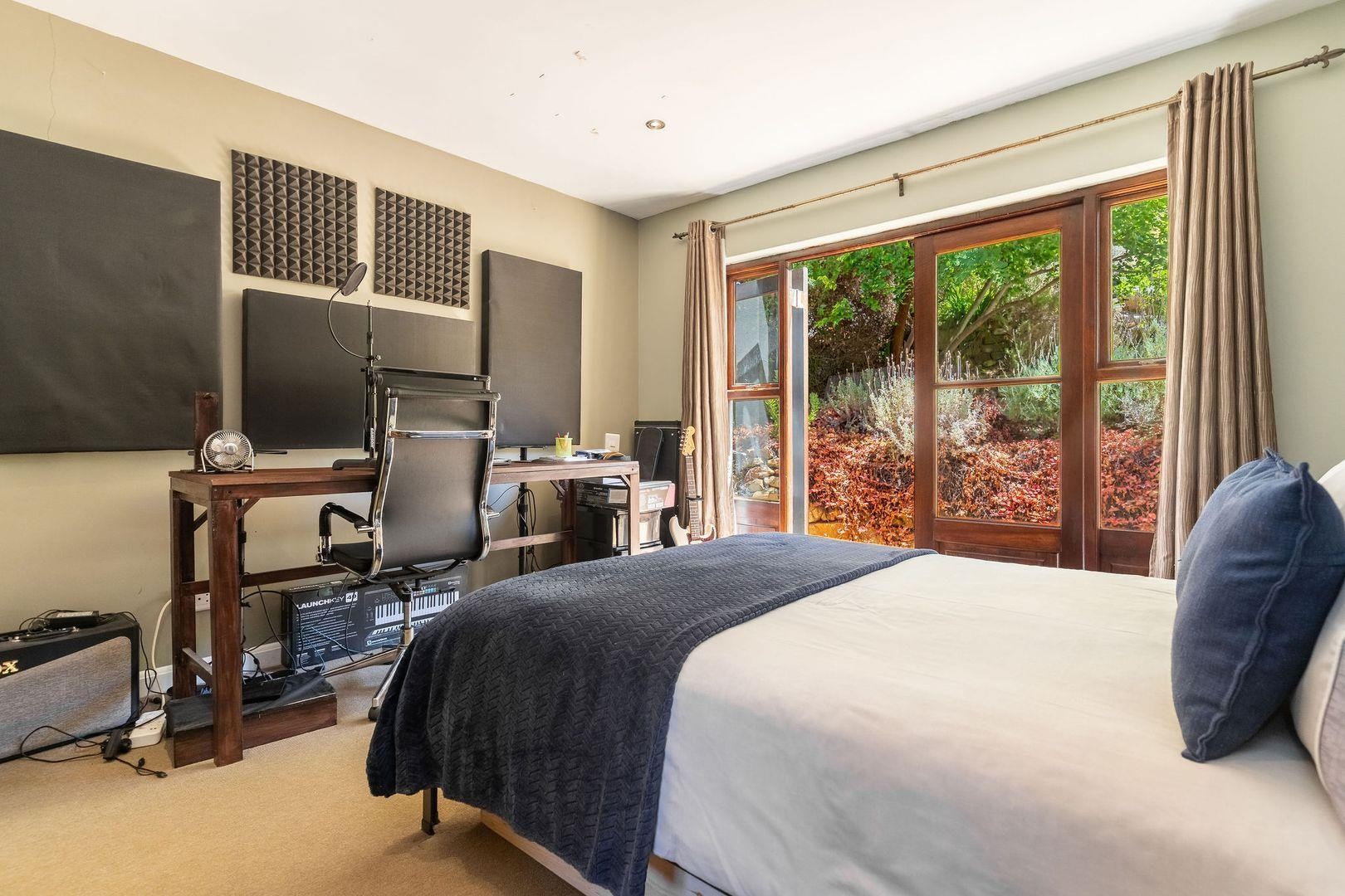 - 4 Bedrooms (2-ensuite, all North Facing with doors opening out to the pool and garden and incredible mountain views. The upstairs, main bedroom has doors opening to Southerly and Northerly balconies and views galore