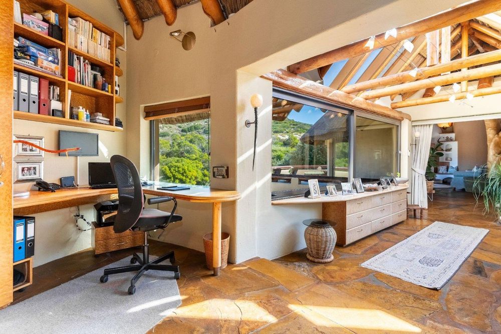 Nestled in the picturesque suburb of Kronenzicht, this residence boasts sweeping vistas of the ocean and mountains that seem to stretch endlessly.