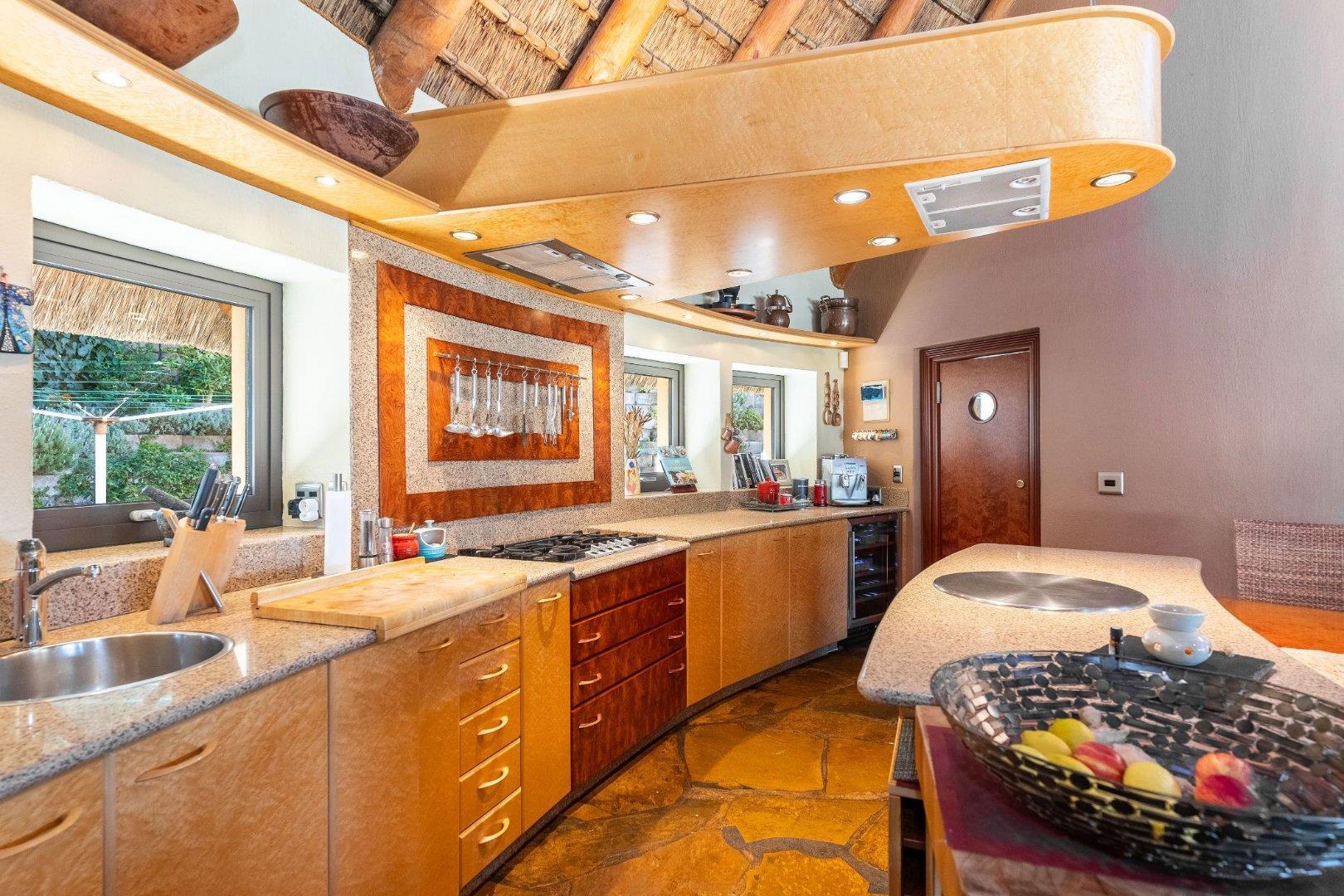An entertainer's paradise, it offers a sparkling pool, generous patios overlooking stunning sea and mountain scenery, and a beautifully crafted barrel-shaped wine cellar, perfect for hosting memorable gatherings.