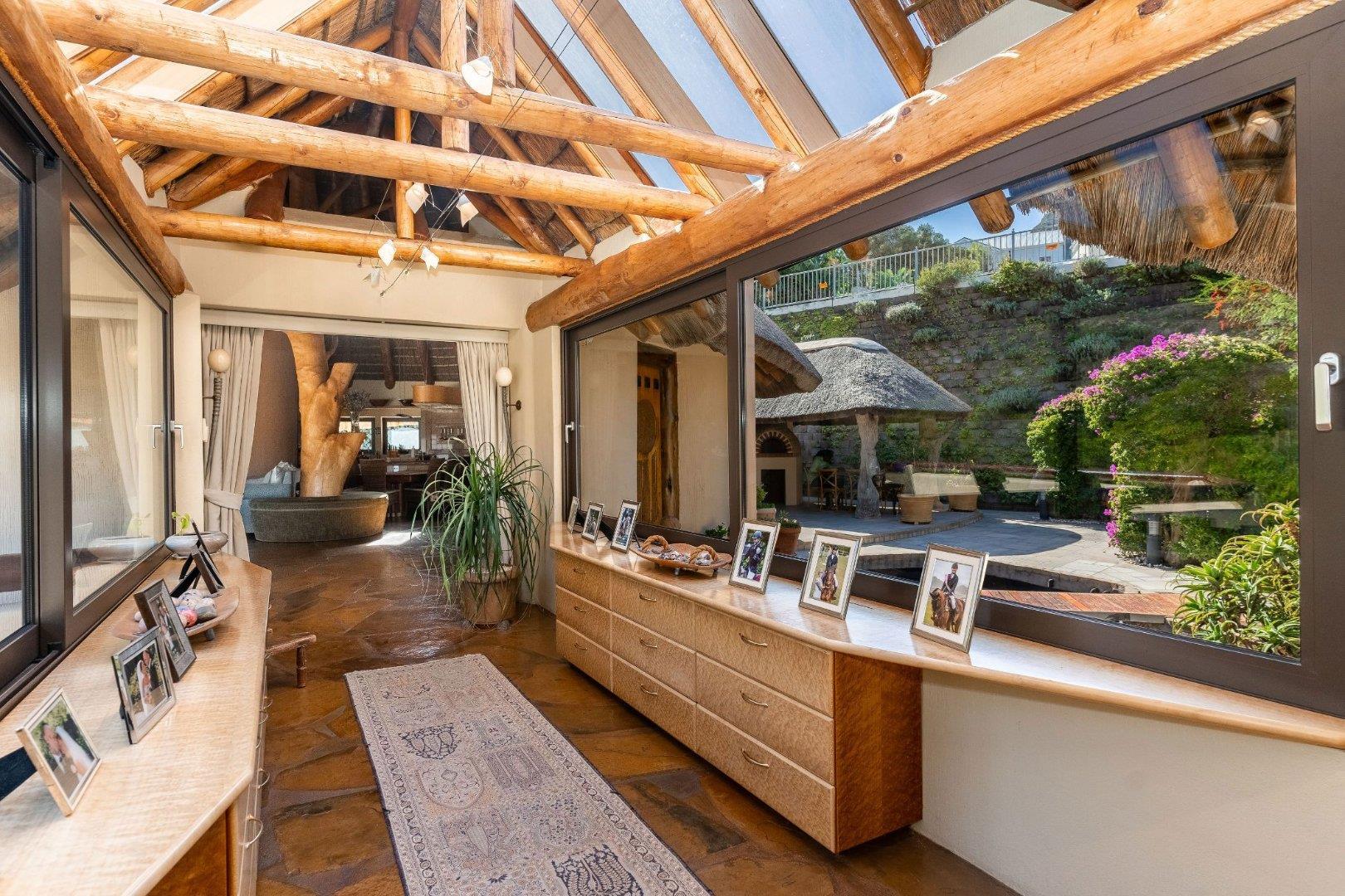 Experience the essence of African safari living with this distinctive lodge-style home that seamlessly blends oceanfront luxury and adventure, providing breathtaking panoramic views of Hout Bay.