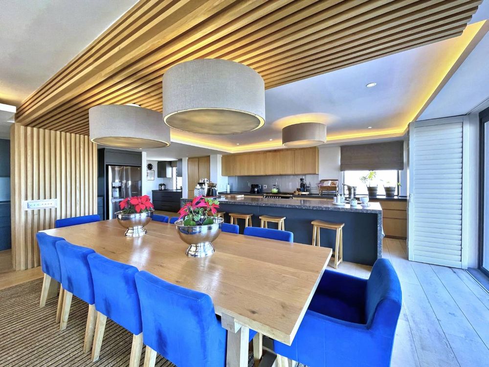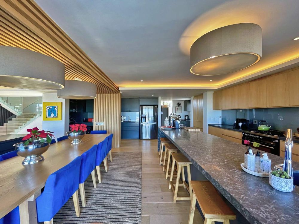Upstairs, the private lounge area opens to a balcony that overlooks the ocean and Table Mountain, offering incredible views. The spacious main bedroom, with its luxurious en-suite bathroom, becomes your personal retreat, where you can rest and recharge while taking in the breathtaking surroundings. Three additional en-suite bedrooms provide ample space for family and guests, ensuring everyone feels at home.