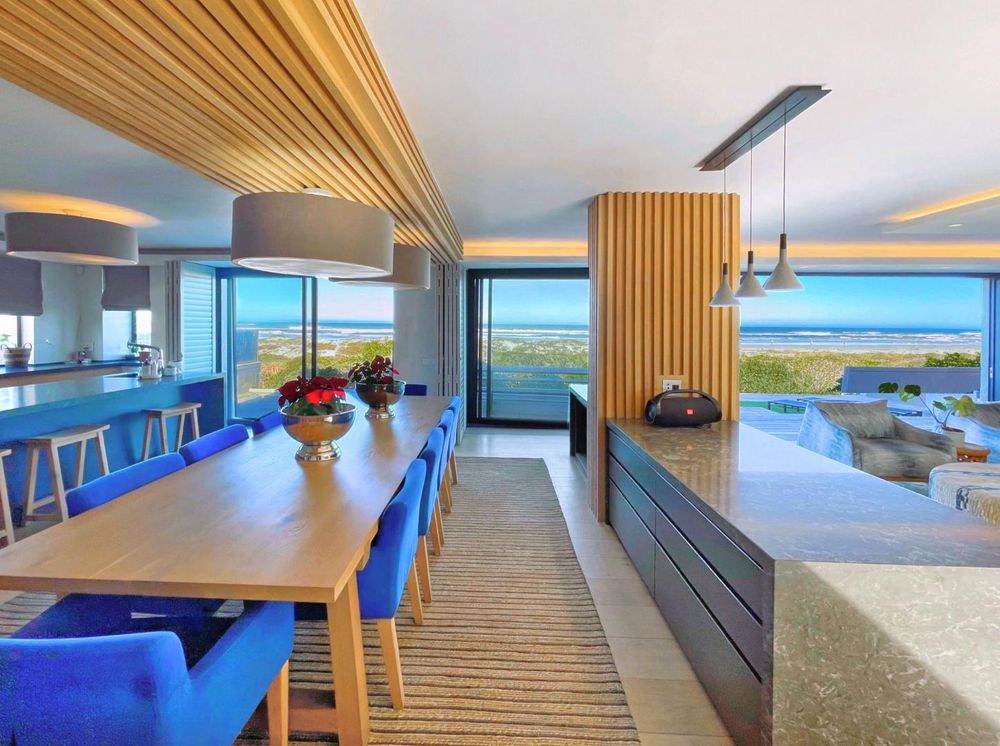 Welcome to this beautiful beach-front home, where the beauty of nature meets the serenity of coastal living. As you enter through the double glass doors, you are welcomed by the spacious, double-volume entrance hall, setting the tone for the warmth and elegance that flows throughout the home. The open-plan design flows seamlessly, connecting the spacious lounge, dining area, and kitchen in a harmonious living space perfect for both relaxation and entertaining.